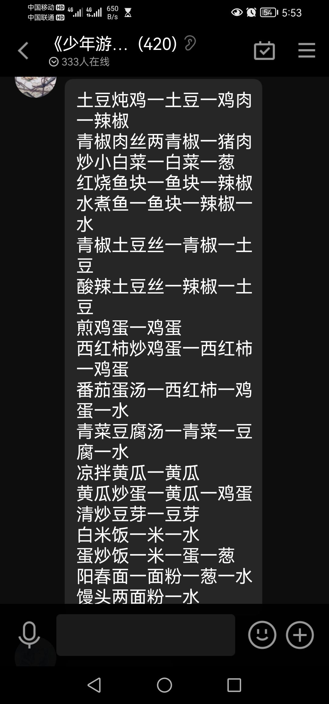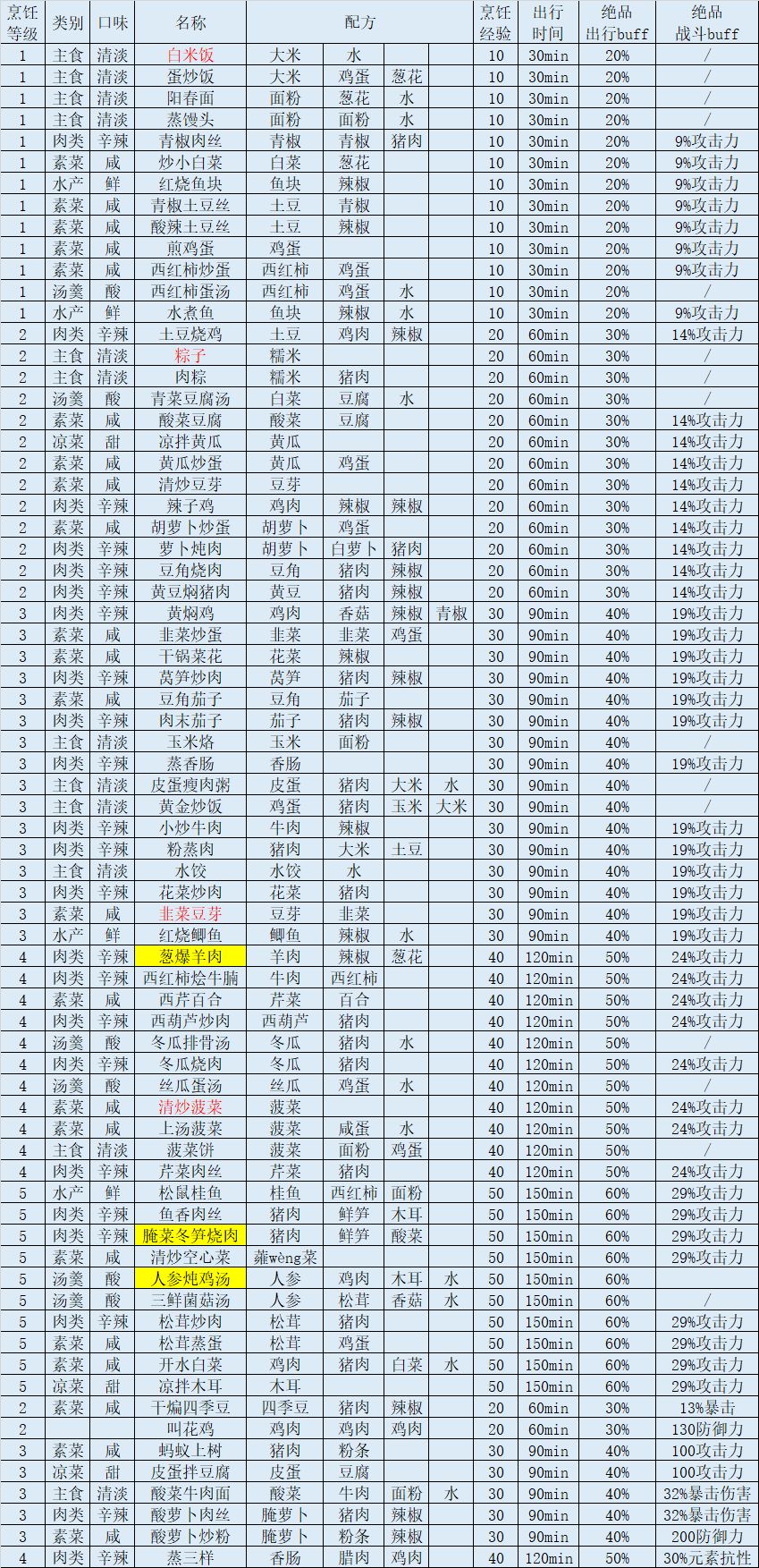 已知食谱