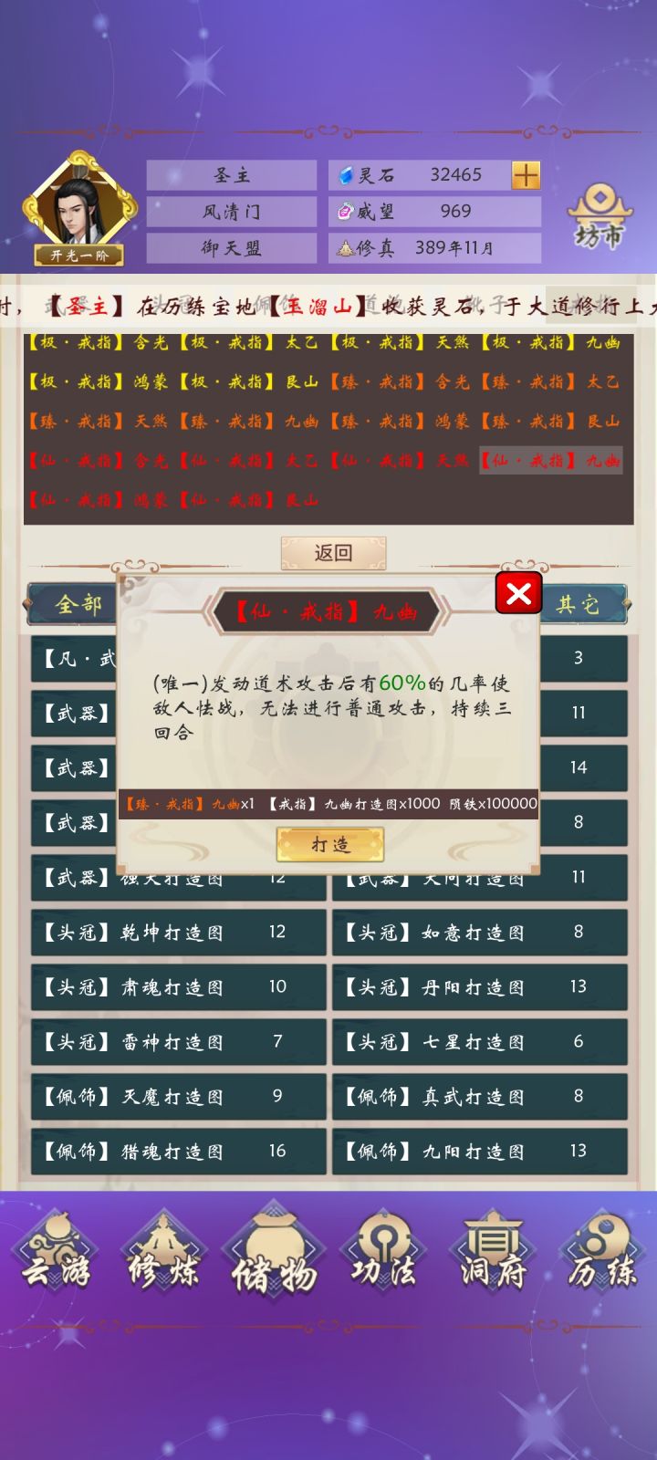 【新手保护】在通关历练120关卡之后自动解除新手保护,新手保护期之内被其他玩家击败不会损失资源和灵石,击败其他玩家也不会获得任何资源。【云游离线】改成150%了(增加3倍收益)