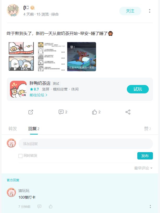 《胖鸭奶茶店》上线啦!论坛发帖还送精美周边