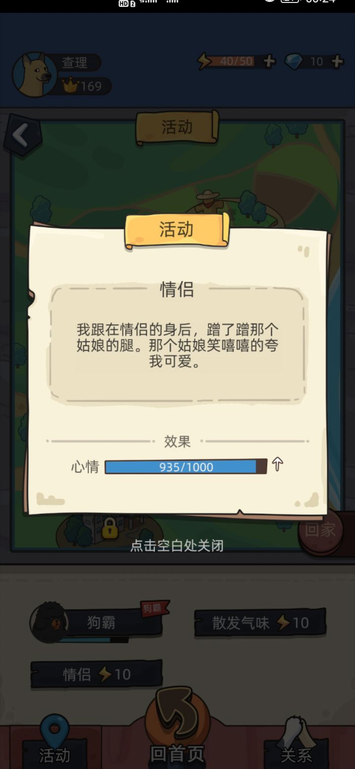 玩了不到十分钟?“我”作为一只小狗就有第一个配偶了,叫“赵桐桐(不知道名字有没有打对)”,首先这不像常见的小狗的名字,其次我俩没过(游戏里的)一两分钟就有孩子了,感觉好奇怪......