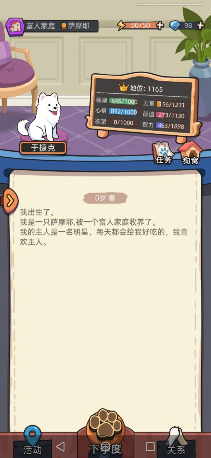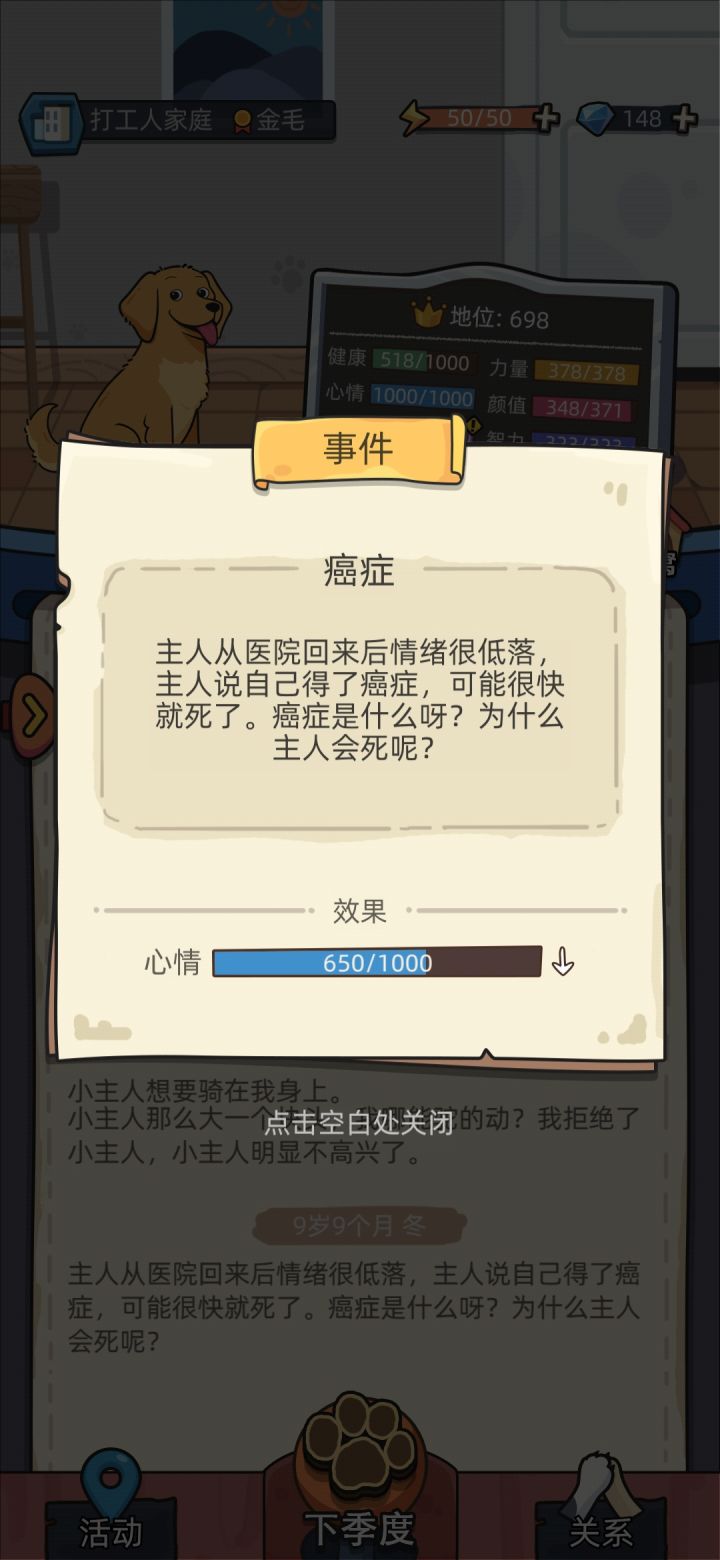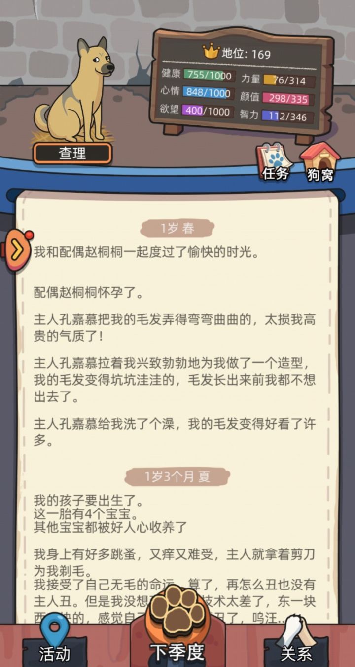 看游戏介绍,“我”作为土狗羡慕出生在皇室家庭的狗......感觉小狗没有什么心思。我希望展现出的:农村小狗相对自由一点,但卫生医疗居住设施没那么好之类的内容。