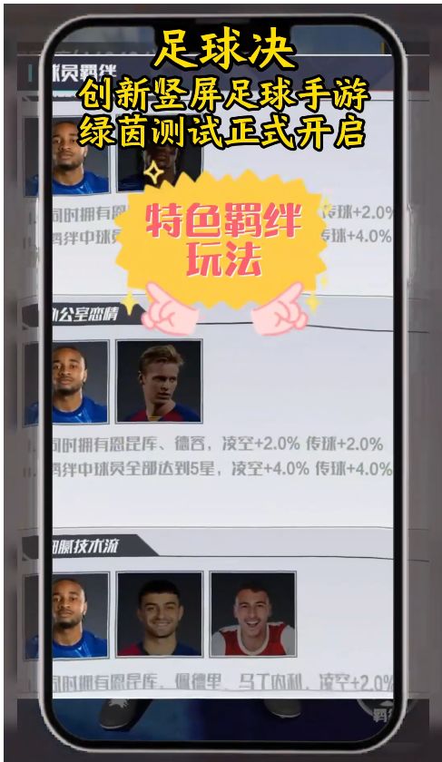 绿茵烽火,今日点燃!《足球决》(安卓版本)正式上线!全球巨星听你调遣,战术布局由你掌控。在这里,每一套阵容都藏着你的足球信仰,每一次排布都能绽放不一样的赛场光芒!以阵容为刃,以战术为魂!「晒首发阵容,赢京东卡」不管你是偏爱传奇巨星组建的梦幻战队,还是擅长挖掘潜力新星打造的平民王者之师,只要晒出你的专属阵容就有机会抱走丰厚奖励,开启你的绿茵传奇之路!一、活动时间即刻起--2月8日23:59二