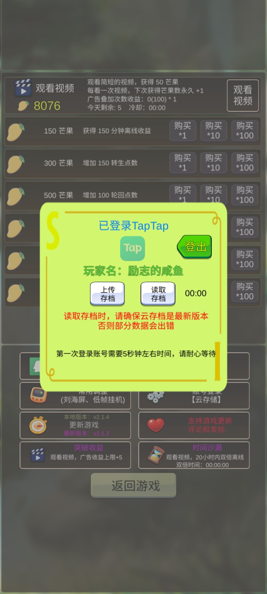 上传存档没有时间限制,可以任意上传。即当我们装备到15级的时候,点击上传,然后去强化,如果成功了,再点击上传,这样我们的云存档里就是16级的档了。如果失败,就点击读取,因为失败会掉一级,这时候我们就用15级的存档覆盖掉14级的本地存档。用这个方法不断强化,直到30级。(该过程比较枯燥,可以在中途一边推进自己的进度一边搞强化。)