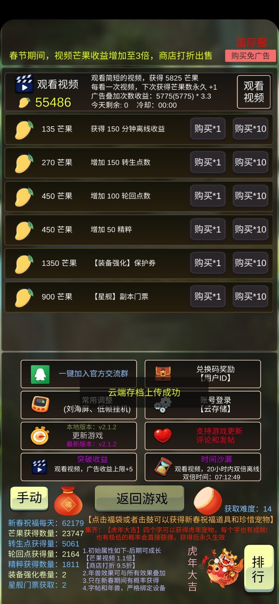 金币收益在线无尽>离线(哪怕有双倍)
