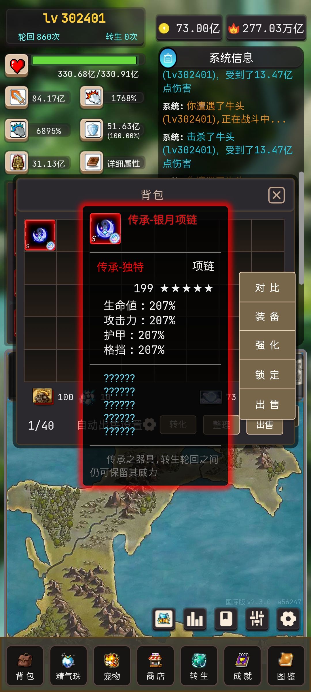 试炼:刷精气珠的副本。没有什么小技巧,就是战力高了去推层。值得一提的是这个最高层数也是一个账号记录,并且有扫荡功能。例:你在100级的时候,推进到了第10层,那么当你转生或者轮回之后,提升到50级,就可以扫荡50×10 再除以100,也就是5层。