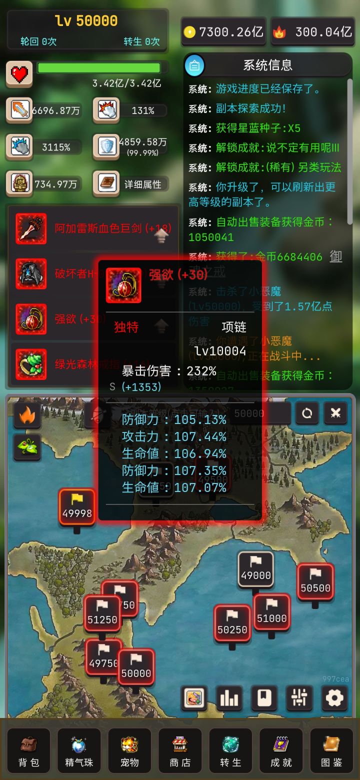 面板防御若干第一格挡第二攻击第三血第四凑 满100暴率第五 暴伤越高越好(有宠物就可以无限提升面板)重铸属性 只要百分比的 格挡和攻击格挡和攻击面板尽量数值差不多大约自身战力2 .5倍的关卡都可以自动重复装备武器 带有暴率和暴伤衣服 带有防御和爆伤项链 带暴伤戒指 带暴伤
