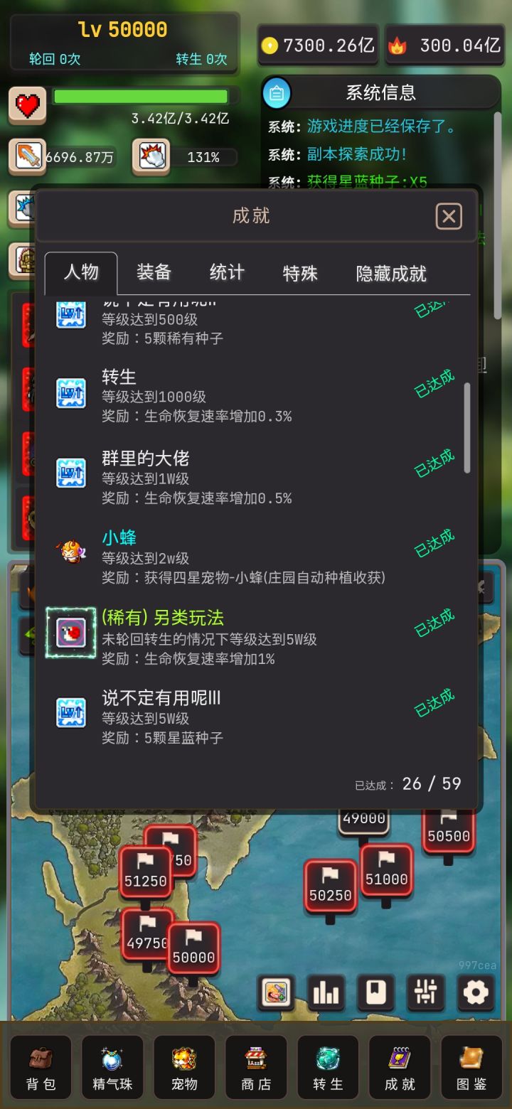 通过的副本等级=人物等级=商店的装备等级 首次是30级转生,251级轮回