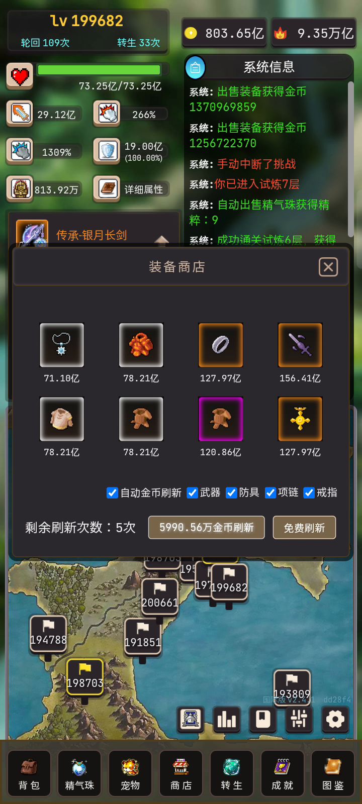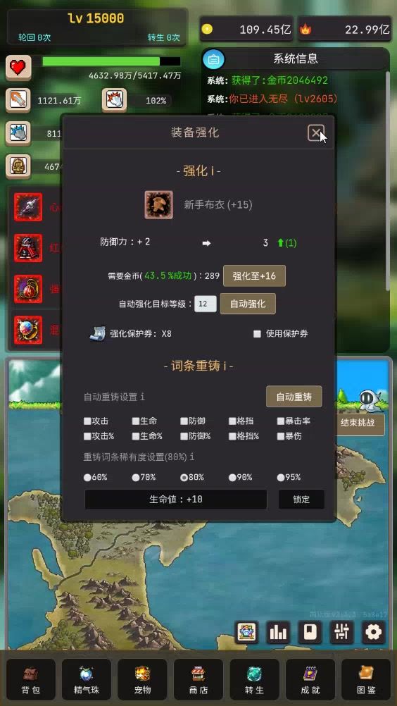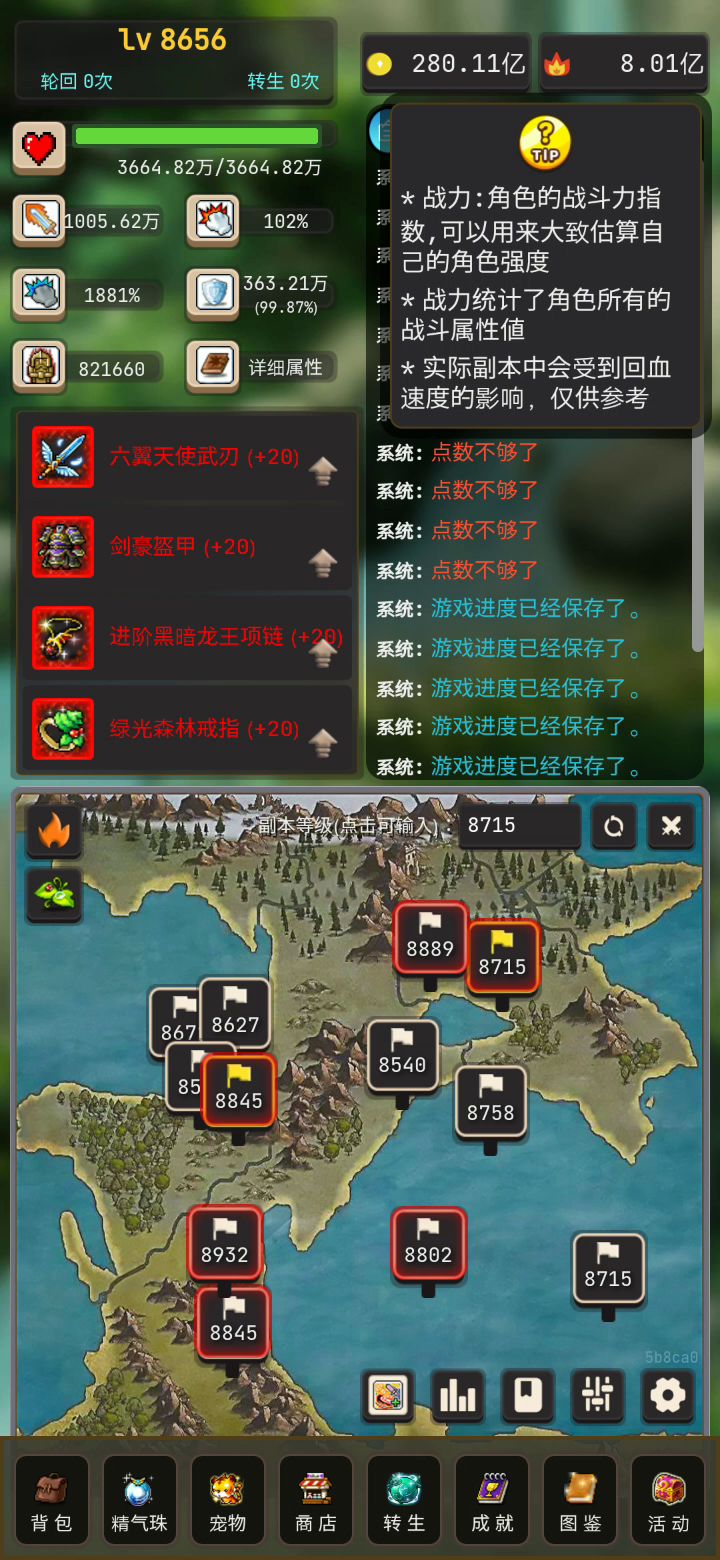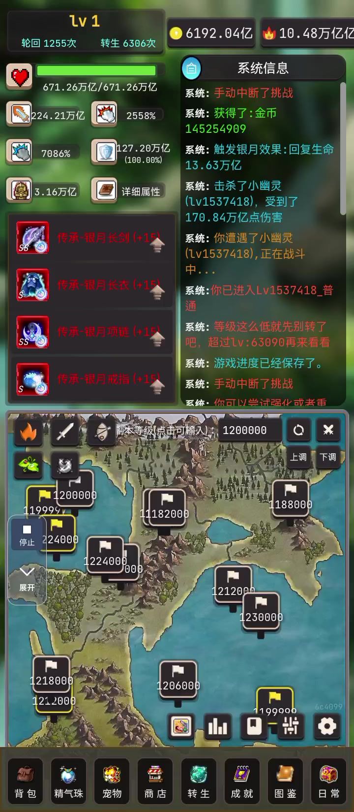 无限轮回,太无聊了,直接连点器挂机,换个手机玩其他游戏或者看剧,一分钟自动轮回四次……不过这游戏每次打完副本位置会变,所以点副本的位置要多设置几个点,总有一个点能点到的,然后副本会越打越高,所以我能打158万,到我设置开始打120万,这样就能挂机比较久了,虽然属性少了25%,但无所谓,我能连点器挂机……