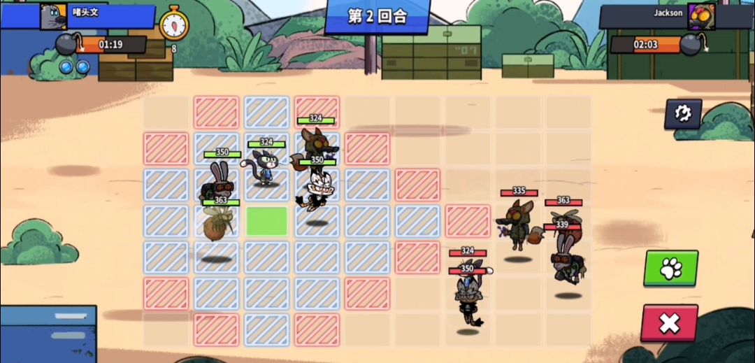 视频双方为高端局前五玩家,分享一下战棋类游戏的战术思维 双方英雄平均都是9级我方后手,前三四出场英雄都是猫,狐狸,兔子(战技局猫是爹兔是娘,狐是大冤种死了拉一个)对方出辐射蚊和护甲虎,与之前不一样的考虑障碍物和陷阱较多,最后手选择犀牛;打防守且不怕猫超距秒我方角色。 第三回合,对方看我方阵容打算进攻,我上猫和狐狸打伤对方老虎,预计下回合盾给猫送掉狐狸。 第四回合,出现失误打退了老虎被对方使用了见机行事,对方也没直接杀我狐狸打算干掉兔子,可能没算到我方犀牛有阵地。结果我方杀掉对方老虎狐狸被打出灵魂。 第五回合,对方选择先杀我兔子,那我拿走猫。(我也失误在于应该先用猫被动打辐射蚊)最后对方兔子死前套盾给了辐射蚊 第六回合,进入残局四打二 ;对方狐狸合火杀了我的猫,犀牛也被烧死了。我还贪输出把狐狸送了上去,相当后悔 第七回合,对方通过自爆一换二锁定了优势 完后对方告诉我,辐射蚊炸死对方也算赢。。。。。原来这样长见识了哈哈