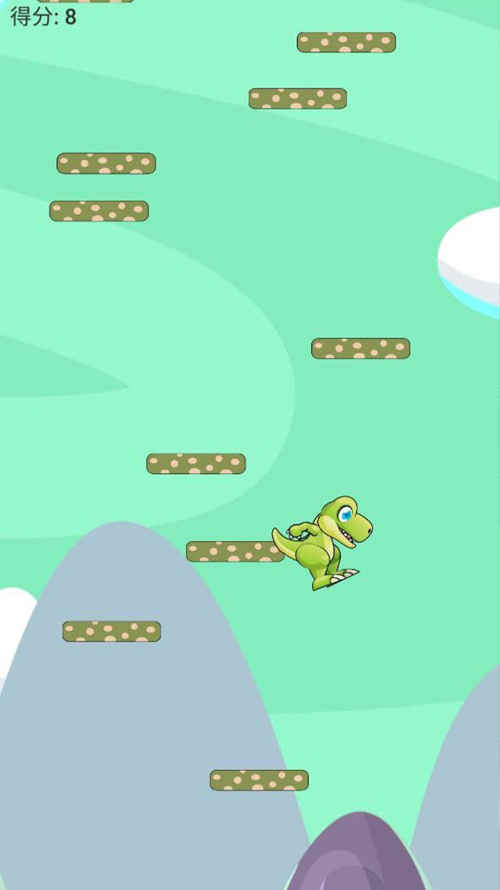 跳跃恐龙是一款简单、有趣的跳跃游戏。 和恐龙小丁一起越跳越高。避开坠落的流星,利用平台取得最高分!