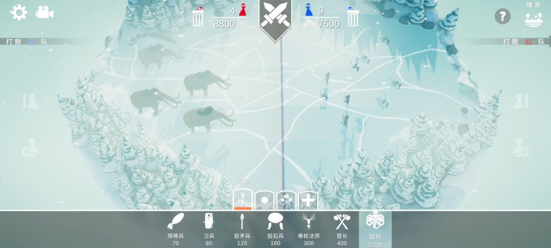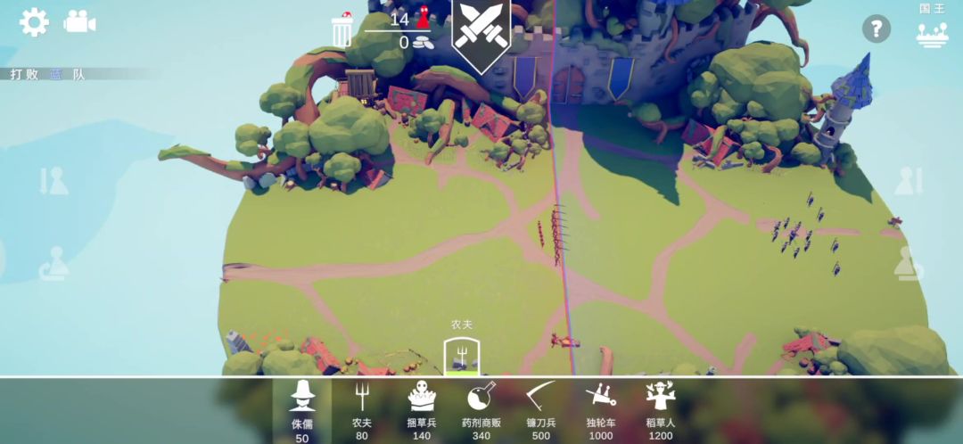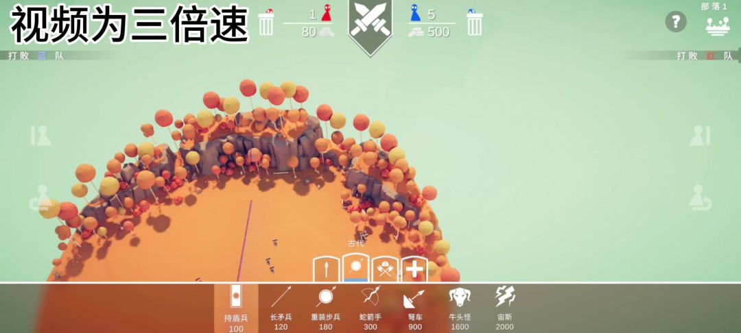玩家操控80块钱卫兵 VS 五个AI操控100块钱持盾兵