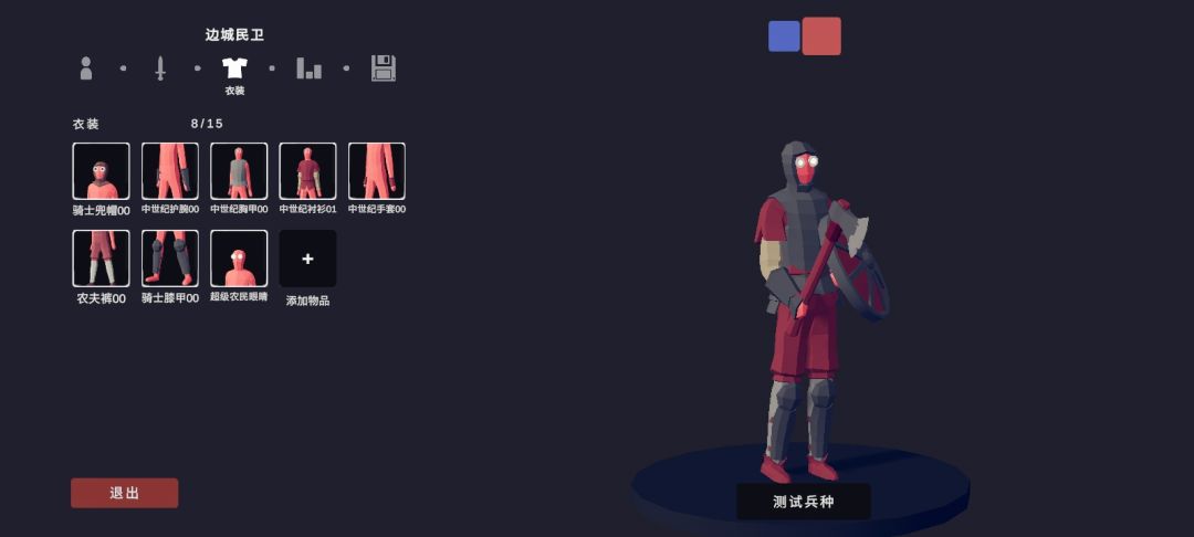 #自定义兵种大赛#全面憨憨战争模拟器 失落时代自定义兵种介绍: ——————边城民卫————边城哨兵—————— 花 费:150————————170 生 命:120————————100 尺 寸:1.00×———————1.00× 重 量:1.20×———————1.20× 移 速:1.10×———————1.20× 攻 速:1.30×———————1.50× 伤 害:1.20×