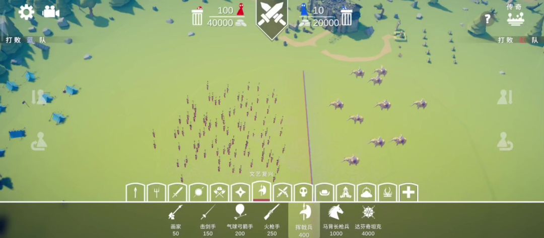 玩家操控80块钱卫兵 VS 五个AI操控100块钱持盾兵