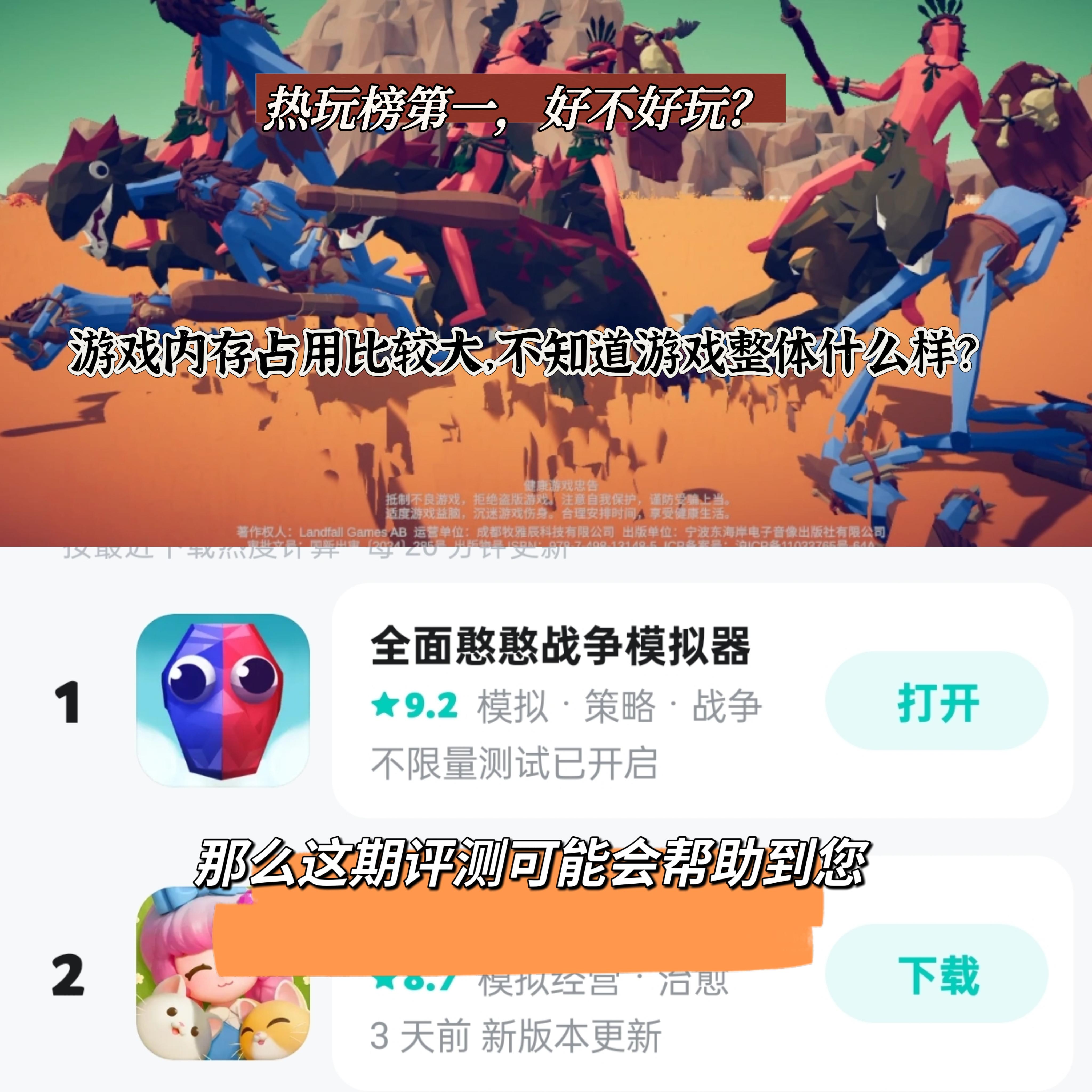 如果想如果想要了解更多有关游戏的测评,就请关注我哦 如果如果有想让测评的游戏可以打在评论区,下一期我会从评论区挑选 没有的话我就会从每期的热玩榜等一些第一名的中抽一个#全面憨憨战争模拟器 测评#我的游戏日记vol11