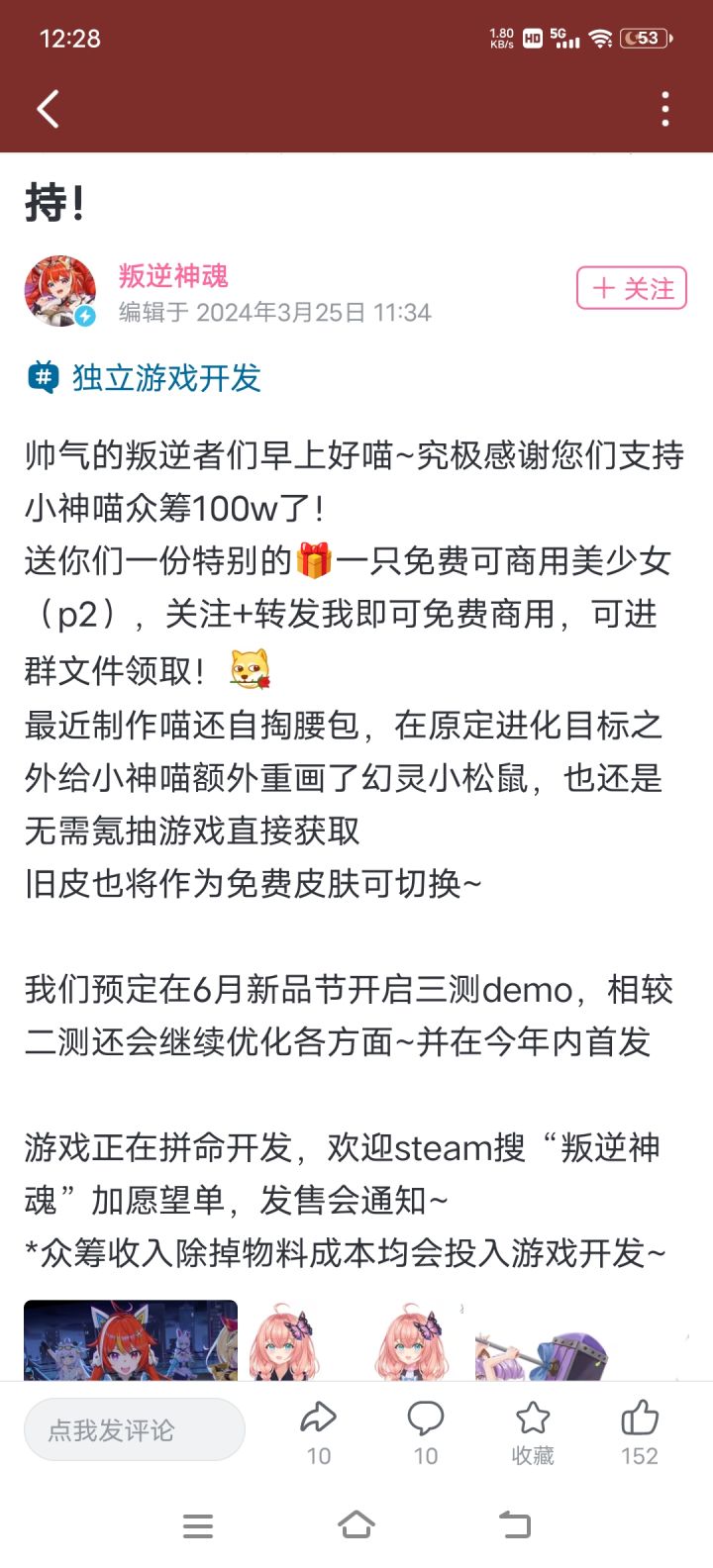 诶!各位叛逆者们好久不见啊我是制作喵虚妄喵~喵呜!最近一直在疯狂赶进度都没怎么冒泡,这下发个开发进度视屏喵!这两年做了很多 剧本 策划 美术等内容,不过战斗系统还在优化ing……每天平均10小时以上,真是极度极度想做好这作,最想要表达的故事对了,别忘了咱们不是氪金抽卡游戏是买断制哦!超叛逆的喵!也是没无zbj介入的绝对本心之作,全是自掏腰包QAQ穷的瑟瑟发抖,不过还是在全力拼命开发in