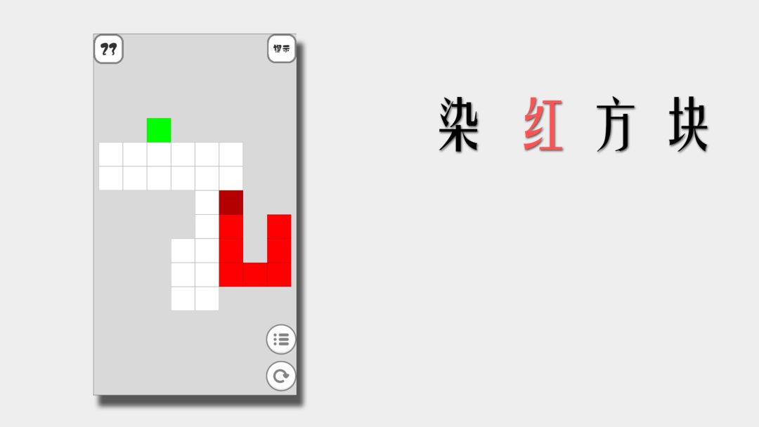 这个游戏很简单,只需要把所有白色方块染成红色就可以了,绿色方块是开始方块,数字方块必须要按照顺序染红,黄色方块会随机消失,就这。