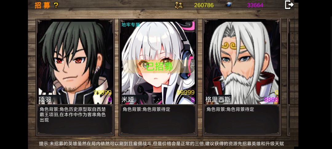 首先在下载游戏后,一定要入QQ群(群号:763742972),把能拿到的兑换码兑换了,这样应该会有几件神器和金币。新手一定先从战役模式开始,先把四关战役通关。在进入战役模式时,会有各种难度选择,建议先200难度开始,这样玩的既简单拿到的神器也能带出去。特别需要注意的是,在第一关最后的两个空间裂缝,一定要去打了,这样能解锁面板上的地牢模式和玩家住所。 战旗英雄分为战役模式和地牢模式,战役模式的主角