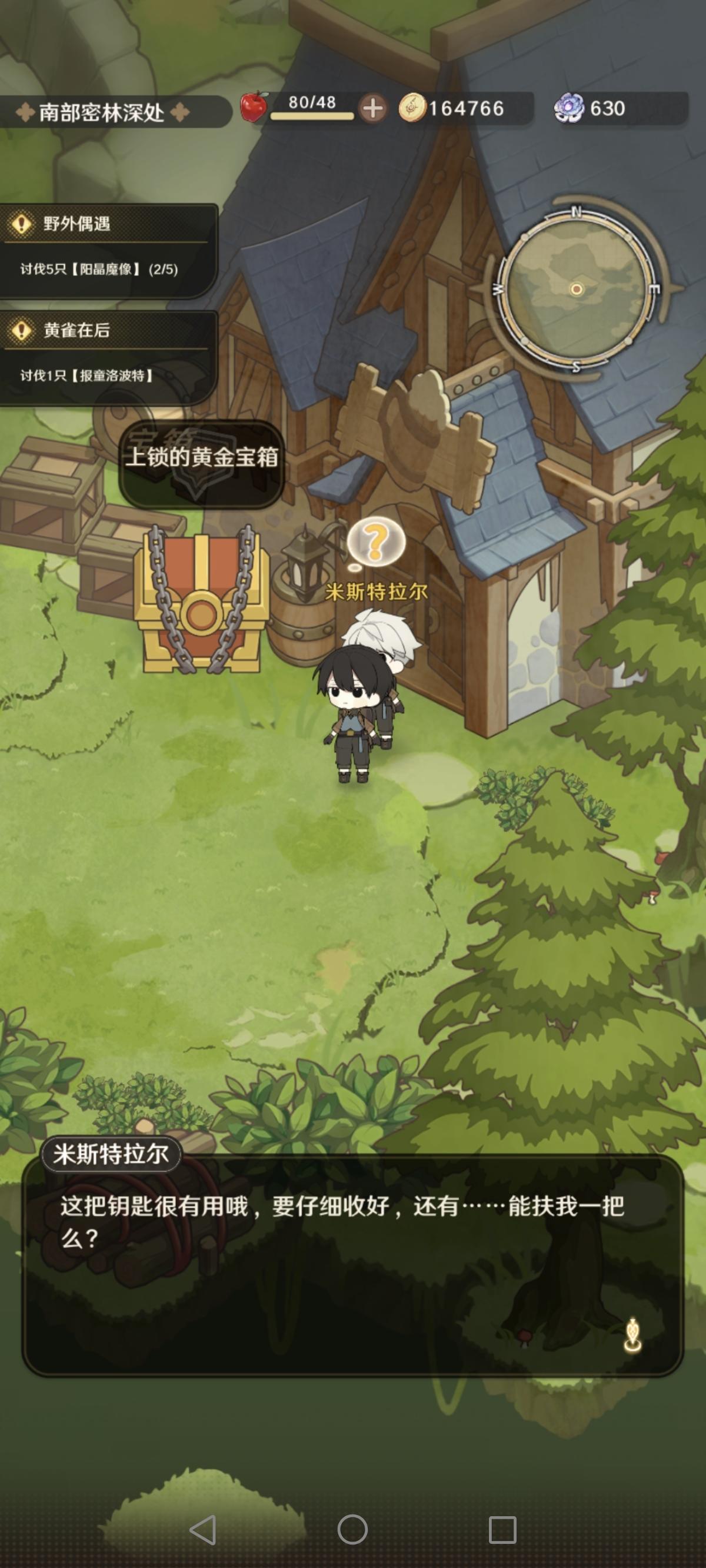 在地图上有三处上锁的黄金宝箱,分别在第一章、第四章及第五章(位置见评论区,下同)。第一章宝箱钥匙就在宝箱旁米斯特拉尔身上,后两个宝箱钥匙在青叶镇琳登和拉克丝珀身上,找他们三接任务就可以拿到三把钥匙。☆另外,关于【委托-信使的任务】此任务在找拉克丝珀接任务且按任务找到塞奇(位于传音林区第三章前半段)并完成任务后,还需要再去找塞奇汇报。最后才是找拉克丝珀获取奖励。#发现好游戏