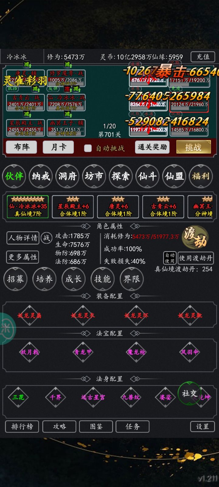 游仙开启 前期可达一天20万-30万的攻击