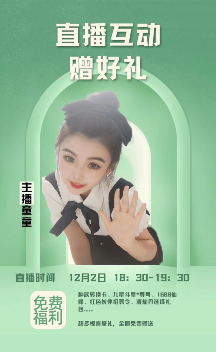 周五直播来啦本次直播没有限时积分兑换道具的活动,但是有我们的美女主播和技术老师跟大家讲解游戏玩法和攻略!还有福袋和通码等着大家!今天晚上6:30,道友们播间不见不散