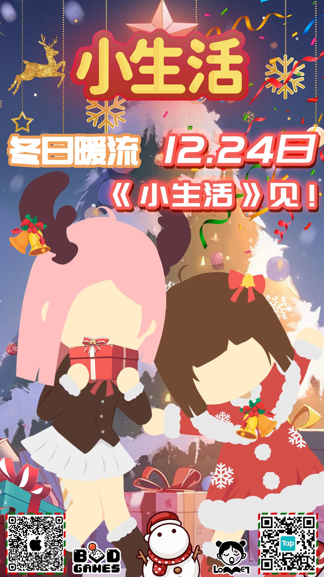 🎄 圣诞节平安夜,与《小生活》共享悠闲时光! 🎄 这个圣诞,让我们一起进入一个充满奇遇和温馨的世界。 《小生活》,一款让你在喧嚣生活中找寻片刻宁静的手游,即将在12月24日,圣诞平安夜,与你相遇! 🏠 开启你的小镇故事 🏠 在这个充满魅力的小镇上,你可以经营自己的生活,与小镇上的居民建立深厚的友谊。每个角落都藏着小惊喜,等待你的探索。 🌟 缔造专属记忆 🌟 收集各种装饰品,打造你心目中的完美小屋。