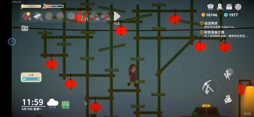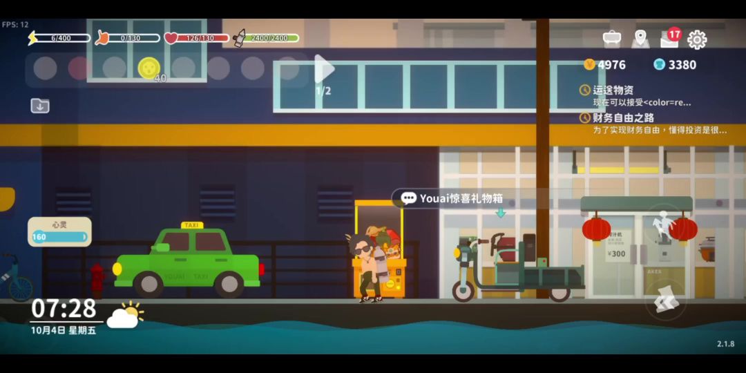 #小生活悠闲小镇物语 个人总结感觉别墅最快速通办法 走种茄子和送外卖路线,但是推销职业也去解锁一下(有几百块补贴) 种茄子不需要每天去干嘛,所以可以和送外卖一起干。每天去老农那里买茄子种子去种下(没钱就去看广告推销篮球鞋)种了就别管了,没必要浇水,等下雨天就好 每天早上第一时间送外卖,七八点的时候可以菜市场便利店之间刷很多单,然后很多店都开门了就要注意,只接便利店,黄焖鸡,奶茶店,菜市场,水果店