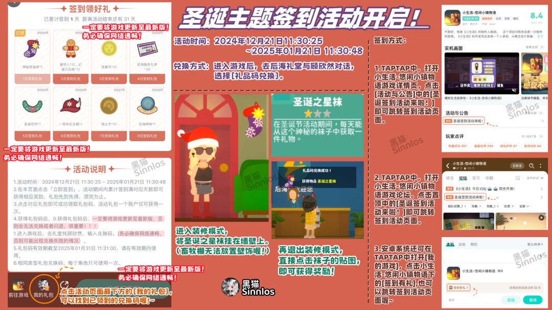 活动时间:2024年12月21日11:30:25~2025年01月21日 11:30:48 兑换方式:进入游戏后,去后海礼堂与顾欣然对话,选择[礼品码兑换]。 * 一定要将游戏更新至最新版,否则会无法兑换或者闪退! * 兑换时务必确保网络通畅,否则可能出现兑换失败的情况! (详细内容可参考图片) #小生活悠闲小镇物语 #宝藏游戏安利 #模拟经营游戏 #小生活游戏 #游戏日常