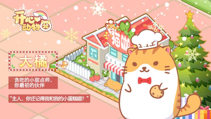 今天来带大家来提前认识一下游戏中未来的小伙伴!首先我们为大家介绍的是——大橘“主人,你还记得我和我的小蛋糕喵?”大橘,喵如其名,是一只“大橘为重”的橘猫。它是开心动物乐园的“小经理”,守着这篇土地,等着命中注定的主人——你的到来。大橘是大家进入园区的小向导,也是你的第一个朋友。大橘在动物园的休息区开了一家猫咪咖啡,它最喜欢的食物是草莓,大橘猫咖的招牌甜点也正是草莓小蛋糕。今天的大橘也在乐