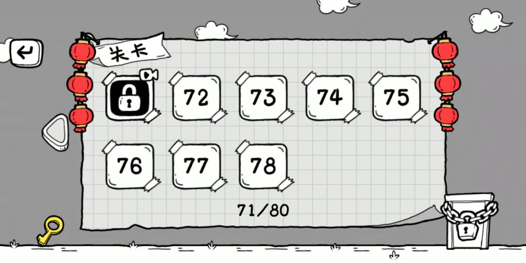 50-51关攻略! 哎呀呀,更新了,新人先来说说新出的两关怎么过。 50关,直接过去,把出现的“胜利了吗?”的字体向上拖动,即可出现茶叶蛋,然后通关即可。 51关,先将钉住福字的4个图钉中的左右上3个图钉点掉,保留最下面的图钉,然后将其中一个铁箱子抬到高处,自由落下,落下后界面会震动,然后福字就会被震的倒过来,就通关了!