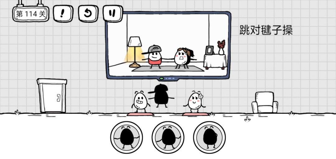 新关卡113关到117关攻略 113:和小黑进行飞镖比赛等小黑扔完之后将护栏往右移动再开始扔飞镖 114:让茶叶蛋和小花跳毽子舞,等电视启动后将电视里的灯移到男老师这边并把灯打开,等第三轮时将男老师的影子拖拽至下方替换任意一个动作影子,然后选择新的影子 115:茶叶蛋去参加拳王比赛,然后将茶叶蛋和小花交换,点击几次小花然后选择小花出战 116:先摘下来两串葡萄,将小花头上的花移到第二块田,去第二块田点击摘出战马蜂窝,跑到第一块田区域等马蜂被花吸引后再去摘取葡萄