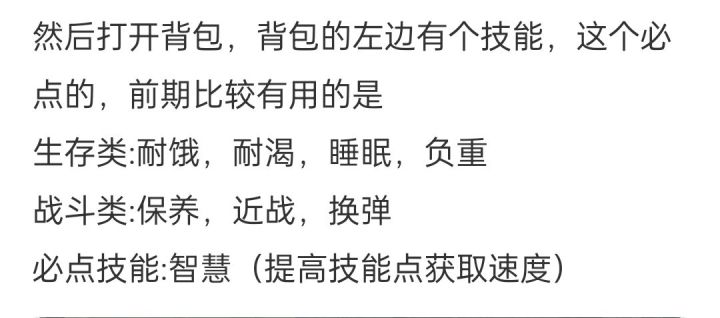 9,角色技能,急救,生命上限,饱食度上限,耐饿,耐渴,免疫,负重,钓鱼,智慧,等等等等…