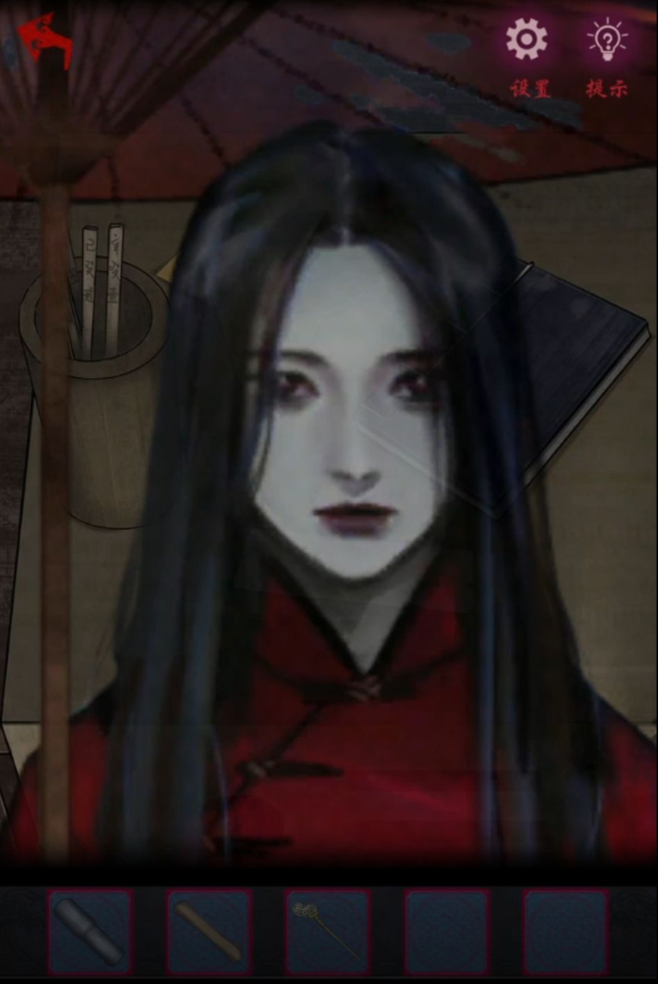 第二章:鬼市 1.(如意楼外)点击台阶旁边的酒缸,在酒缸里获得【秤砣二】 2.点击门柱旁边的竹筐,获得【木炭】 3.点击客栈老板,触发剧情,获得【鬼脸钱币】 4.(码头)点击查看挂在树上的经幡,注意看经幡的高低和对应的符号 5.点击右边的石窟,放入【鬼脸钱币】 6.根据经幡上的图案及高度调整木块的位置 7.在人偶手里获得【护身符】 8.(巷子)拿【护身符】击退红衣女子 9.(画室)点击桌子,拿走桌