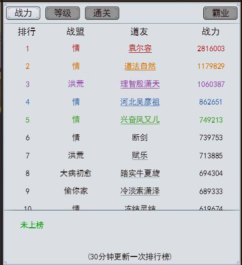 《奔雷无双》排行榜系统