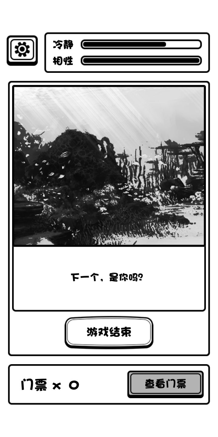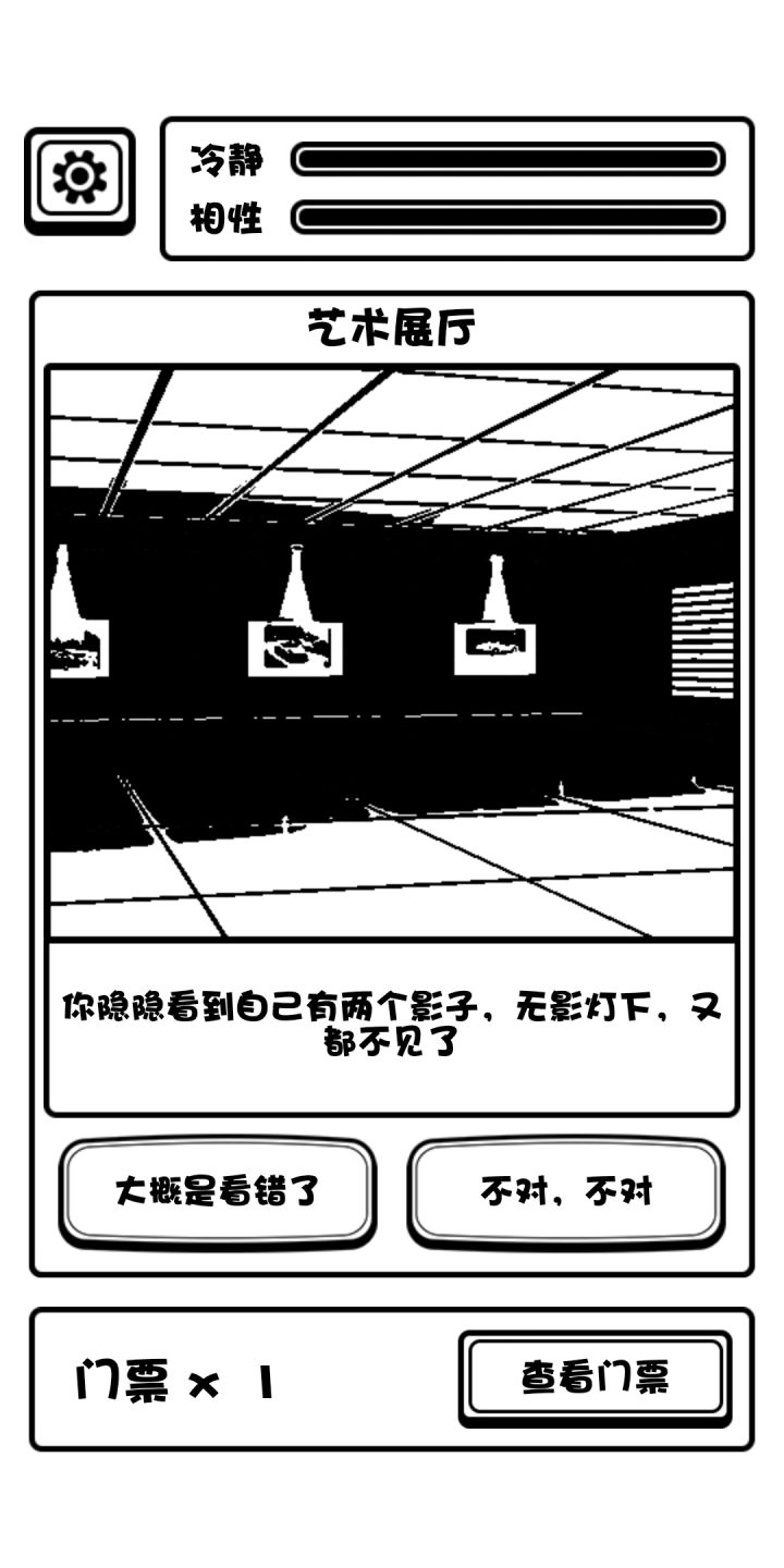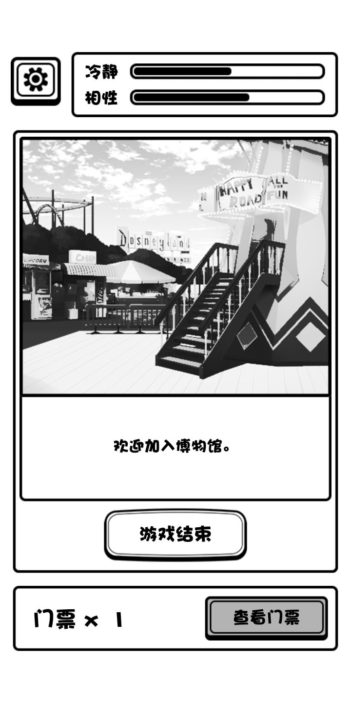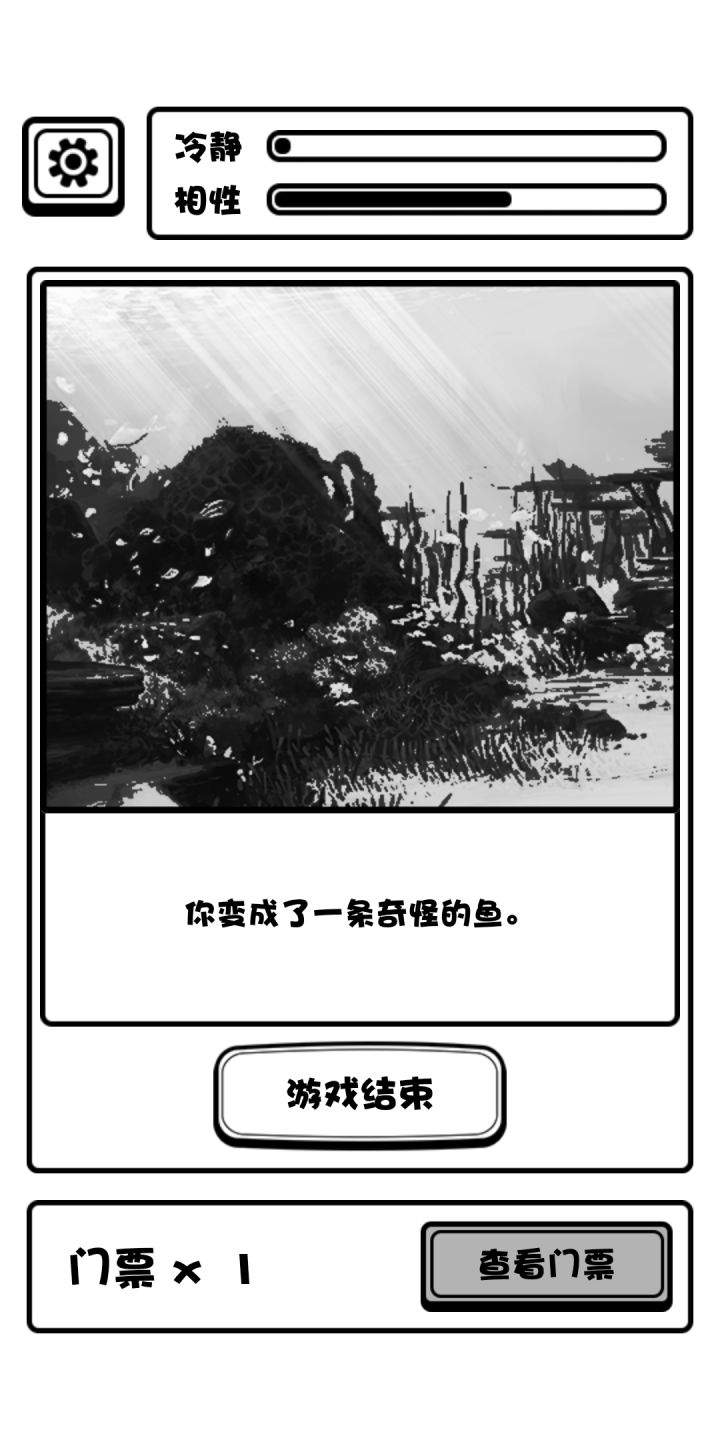 普通游客结局:两个性相游戏中没有涨满过,有一张票从出口离开。 变鱼发疯结局:相性涨高,最好拉满,然后狂跌理智跌破零即可达成。 无票闯门结局:如标题,丢票事件是概率性事件,即看人品 创员工宿舍等死结局:无论有没有票进员工宿舍必然进入此结局 加入博物馆成为员工结局:两个性相至少一个打满(后面可以掉下来,离开时满不满无所谓)且有一张票从出口离开,游戏中我模拟演示了理智满,相性满,满了以后使其跌落互相持平等情况,得出只要满了一个条并保持理智值不跌破零即可达成此结局的结果。