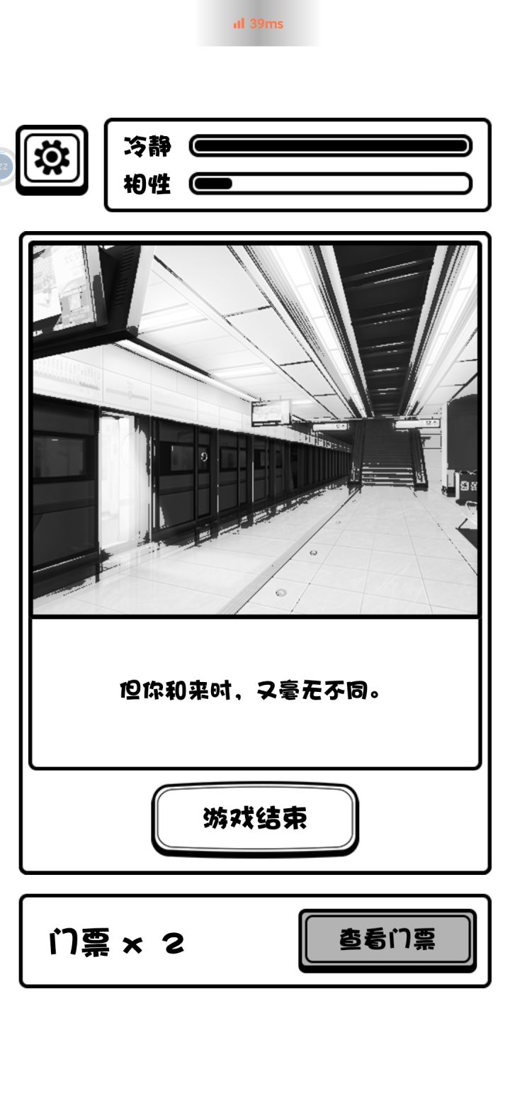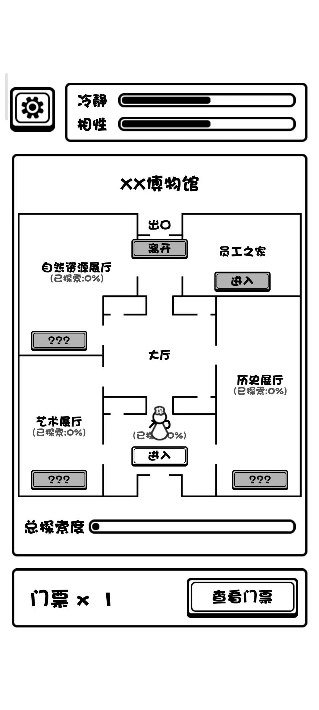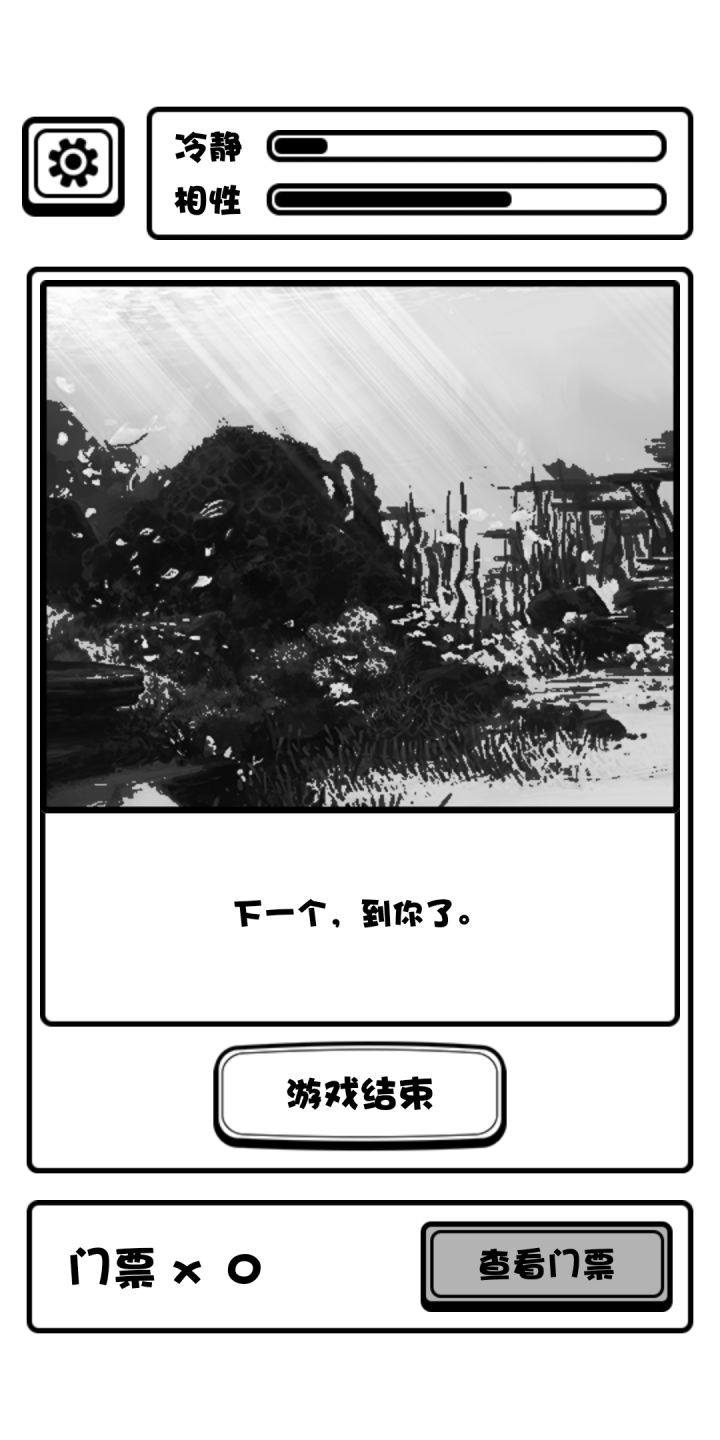 普通游客结局:两个性相游戏中没有涨满过,有一张票从出口离开。 变鱼发疯结局:相性涨高,最好拉满,然后狂跌理智跌破零即可达成。 无票闯门结局:如标题,丢票事件是概率性事件,即看人品 创员工宿舍等死结局:无论有没有票进员工宿舍必然进入此结局 加入博物馆成为员工结局:两个性相至少一个打满(后面可以掉下来,离开时满不满无所谓)且有一张票从出口离开,游戏中我模拟演示了理智满,相性满,满了以后使其跌落互相持平等情况,得出只要满了一个条并保持理智值不跌破零即可达成此结局的结果。