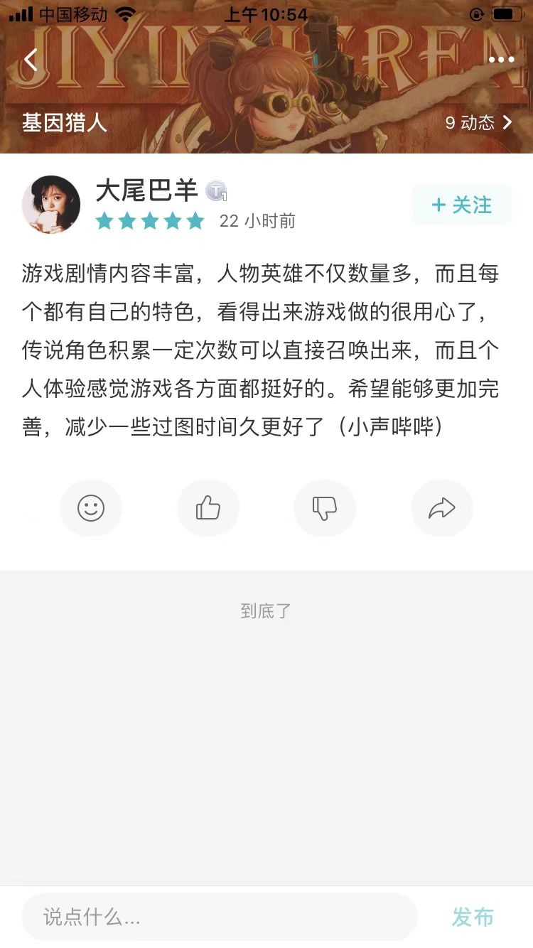 各位末日旅客: 大家好,很高兴,基因猎人终于在2月28日和大家第一次见面了。在这个值得小小纪念的日子里面,我们也举办一些小活动,让这一天更快乐一点吧。 大家可以在帖子下面晒出自己发表过的评论,或者建议,不管好评差评,都是可以的!大家如果在体验过程中有任何建议,都可以提出的呢。都有机会获得京东卡哦。 【参与方式】 在活动期间内,将您对本游戏的星级评价截图回复至本帖,即可参与抽奖。 回帖示例: 【活动
