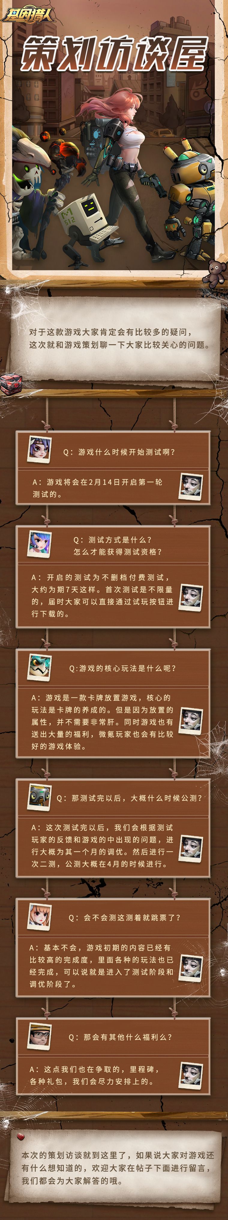 「策划访谈」关于第一次测试的时间和后续公测的时间。