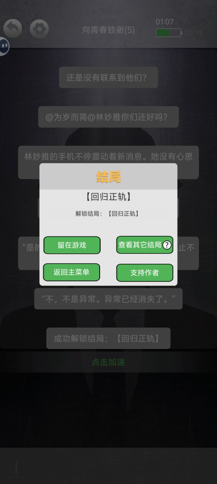 从圆形监狱来的,玩了这么多个类似的文字类游戏,第一次集齐3个100%,发个图纪念一下~