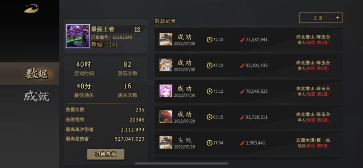 手游版在游戏时可以通过清理后台程序,重进游戏,实现重新刷本小关,对于手机操作和高难度挑战容错实在太有用了,也是单通最最重要的一点