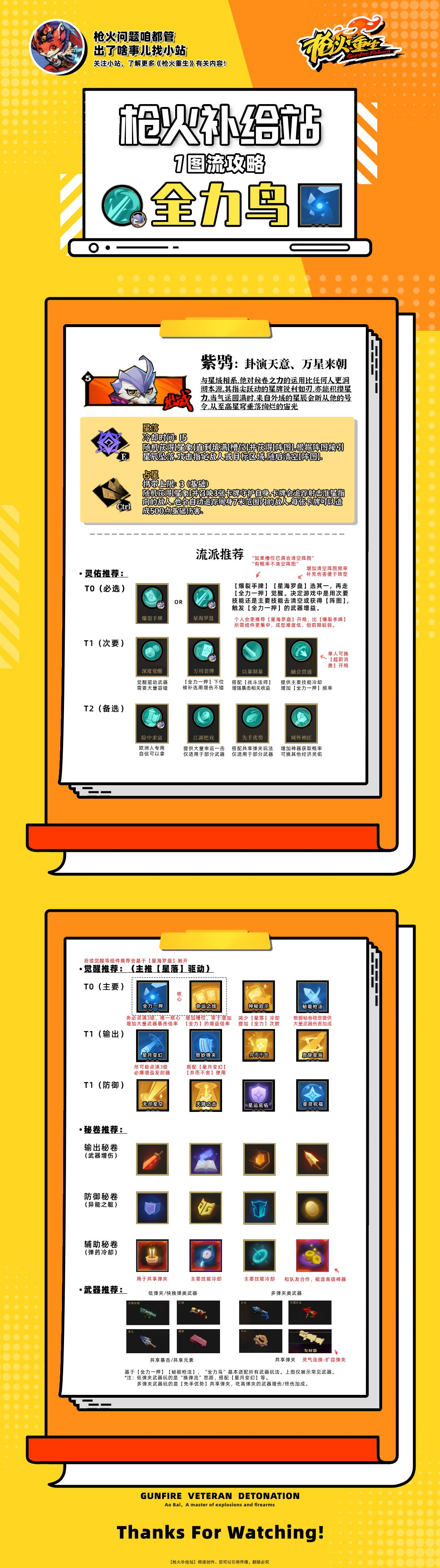 枪火手游要更新紫鸮和灵界狂潮了,应该算只和端游差一个大版本了,追得是真快。 这次给大家带来之前欠下的“紫鸮武器流派一图流攻略”,紫鸮的基础流派攻略就算是出全了,手游的小伙伴们可以一起看下这位新英雄【紫鸮】怎么玩! 明明是武器流派,却不首选专属武器增益灵佑这点,还是蛮独特的,千万别选错了哦!