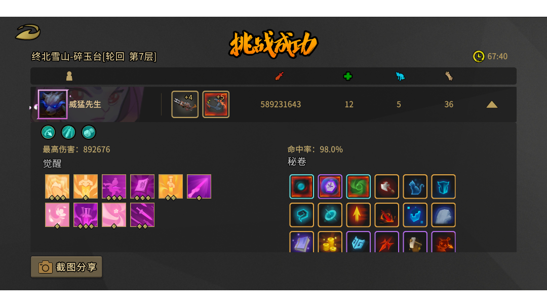 真滴强,雪山最后一关boos就差七万血加三万护甲,两枪就没了,可惜没机会复活了