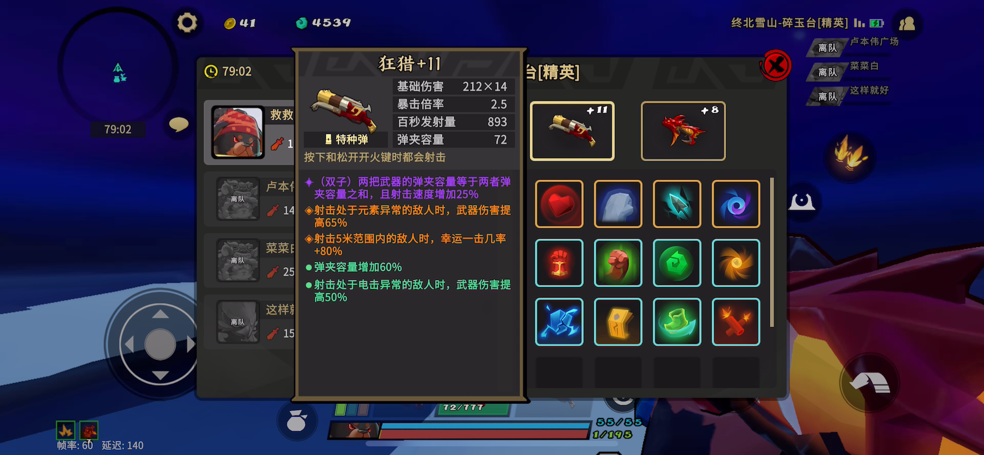 该说不说运气是有点差的,没刷到持续双持天赋和备用弹夹卷轴,打打双持状态就没了,不然不用换弹 一直双持的大喷子是很爽的。 特别是贴脸打时候 那一枪枪的粉色幸运伤害。72弹夹的狂猎变成了大机枪