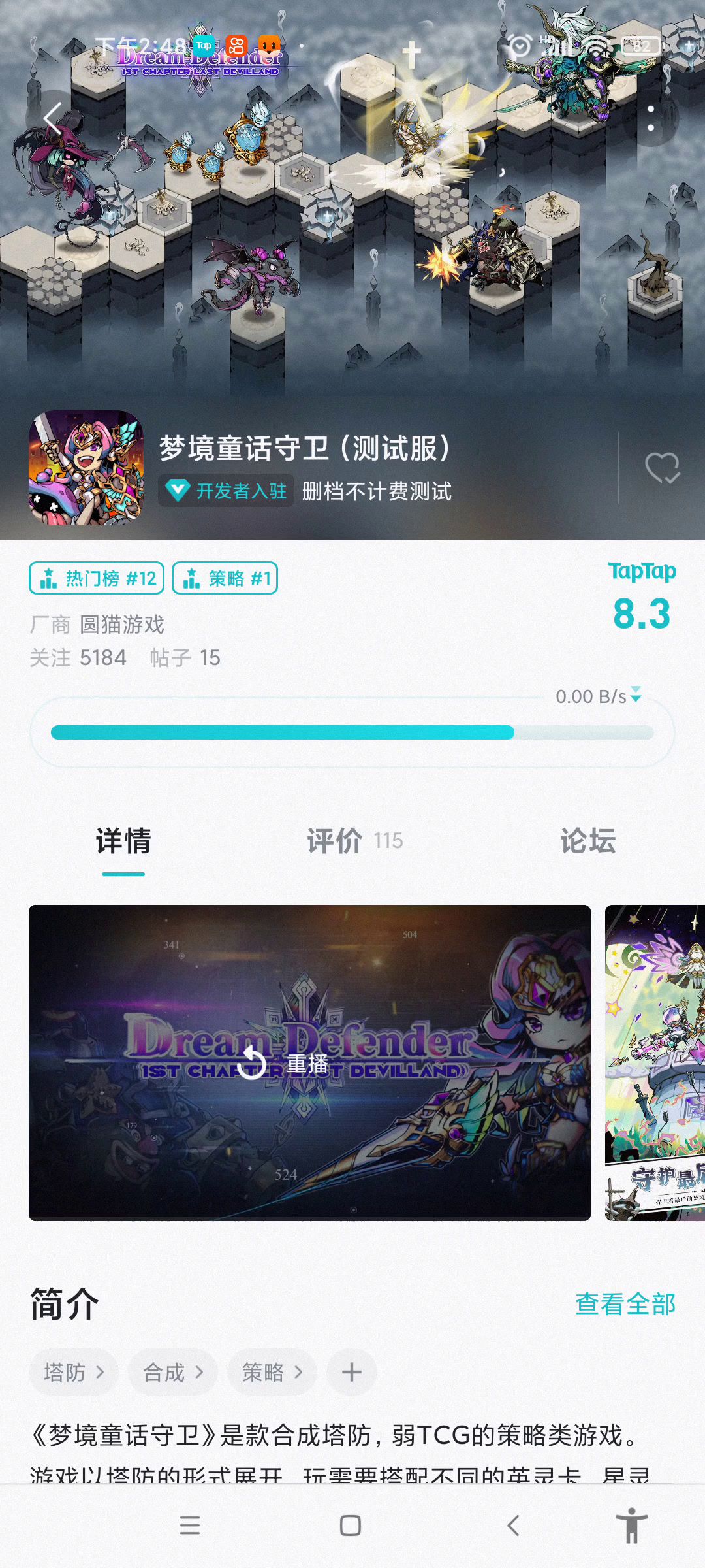 梦境领主:感谢诸位持久以来的关注,领主们的期待和喜爱是我们持续前进的动力,更是对我们的鞭策。时隔近三个月,《梦境童话守卫》(暂命名)终将再次和大家见面。本次测试仅开放安卓版本,为删档不计费测试。 由于游戏目前仍处于研发阶段,为保证诸位领主的游戏体验,本次测试将采取限时下载的方式进行,我们将于2022年04月12日 10:00开启为期两天的限时下载,在此过程中,您可以任意下载游戏进行体验。测试