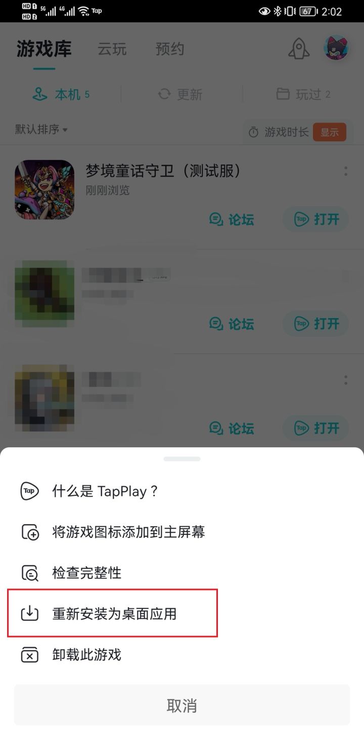 梦境领主:我们发现部分玩家反馈,通过TAP下载安装后桌面无法找到游戏入口图标、只能通过TAP进入游戏、部分机型卡顿的问题。目前前两个问题属于TAP平台设定,您可以通过在TAP平台中选中右上角菜单,选择“重新安装到本地”解决该问题,经测试,在将游戏安装至本地后,卡顿问题也得到了明显的改善,谢谢大家~像是这样: