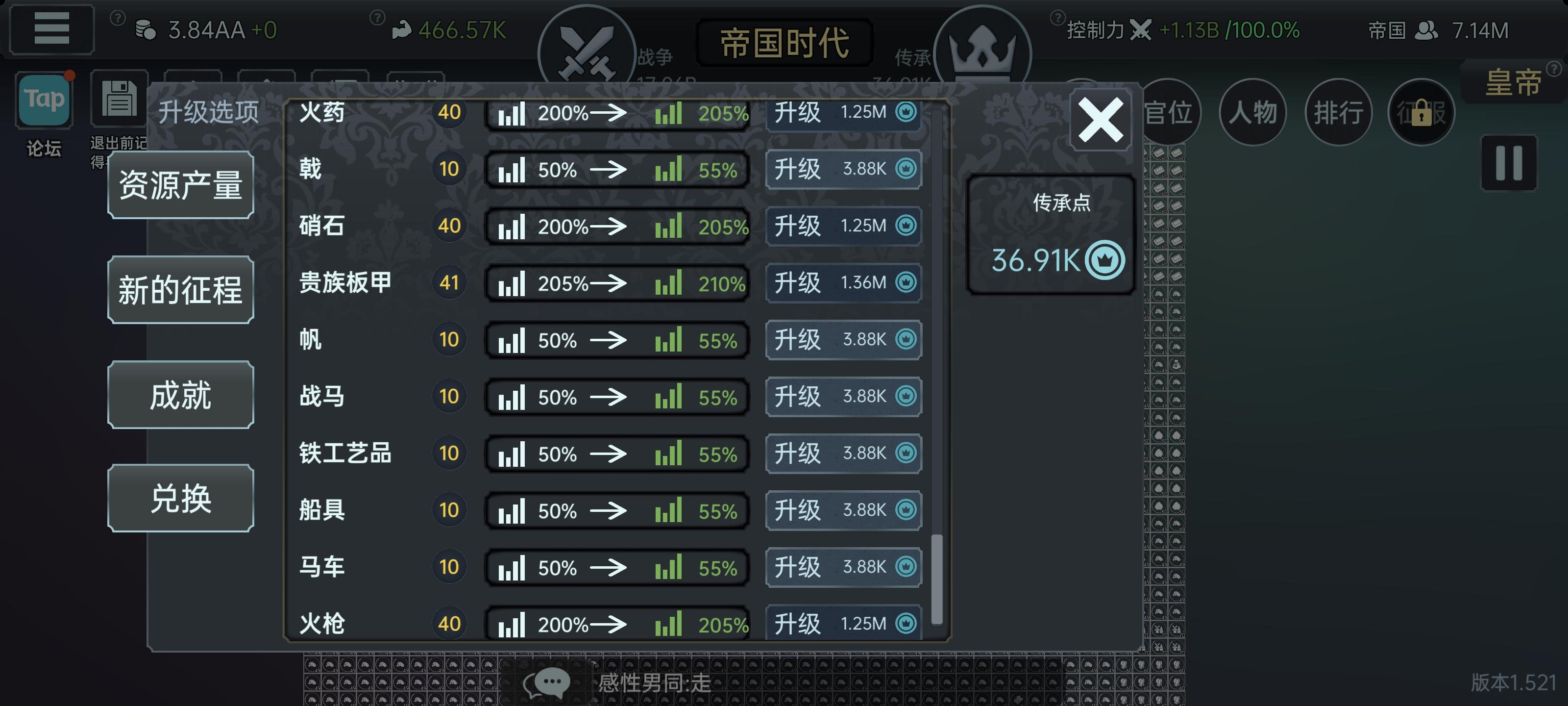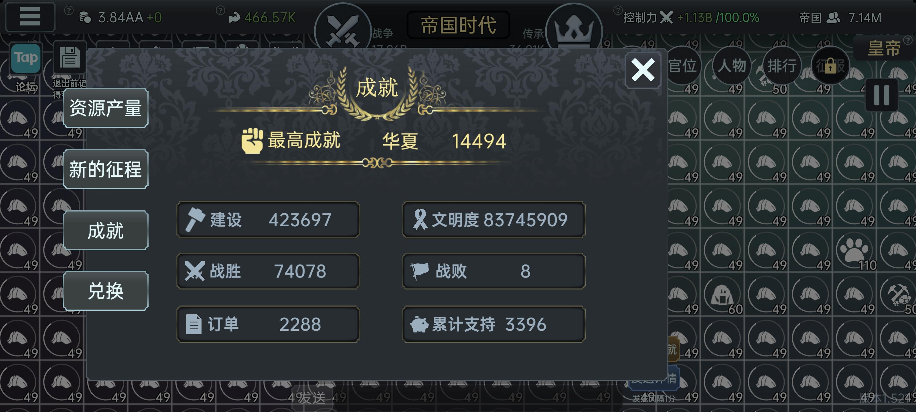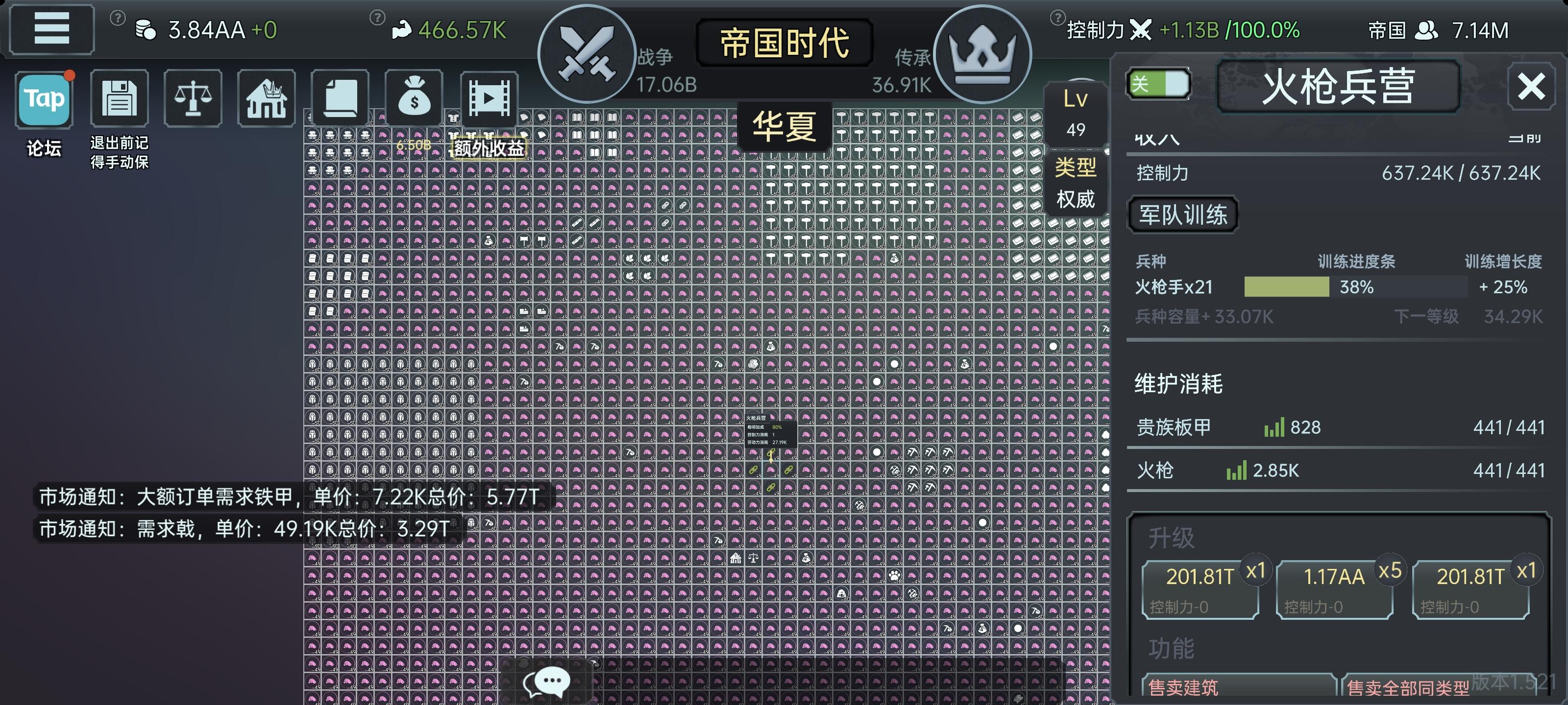 当前是iOS 0.8.6版本,更新至第六个时代航海时代。(2月4日更新了资源兑换攻略。2月9日更新航海时代挂机攻略。)3月23日更新:根据流派不同,相应的兑换顺序、人物保留顺序都不相同。本攻略在最后新增这一部分(如农耕皇帝流、咖啡一波流等)。基础文明:推荐选择中华控制力:建造兵营权威类建筑(如投石军营)来获得。控制力为负,生产力降低,容易崩盘(此时可以手动关闭部分建筑)。控制力100%获