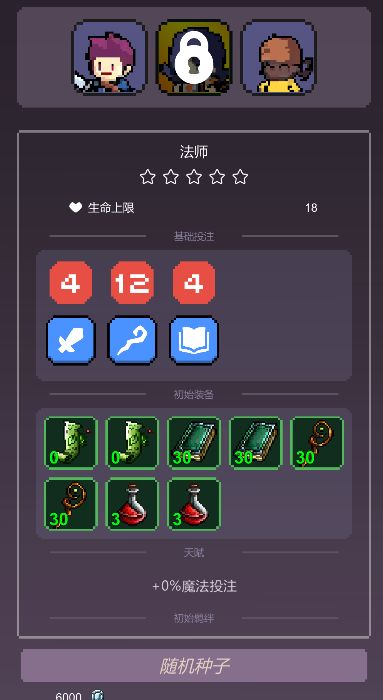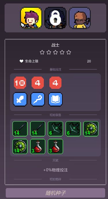 攻略: 1、种子104。 2、打完第一个怪选择顺序:①装备拿风刃②圣遗物拿星星法杖③升级刷新一次然后随意选。 3、第二个怪选择上边的圣遗物怪,打完刷新一下圣遗物拿七星瓢虫,拿到七星瓢虫这一刻开始,没有任何怪能挡住一个风刃(打第一个boss脸黑时除外)。 4、选择怪最多的路线优先boss。 护符:开局求稳可以用选择护符过渡,然后尽快转火车护符,越早叠被动越快。 武器:只拿风刃,因为高阶魔法书蓝耗太高