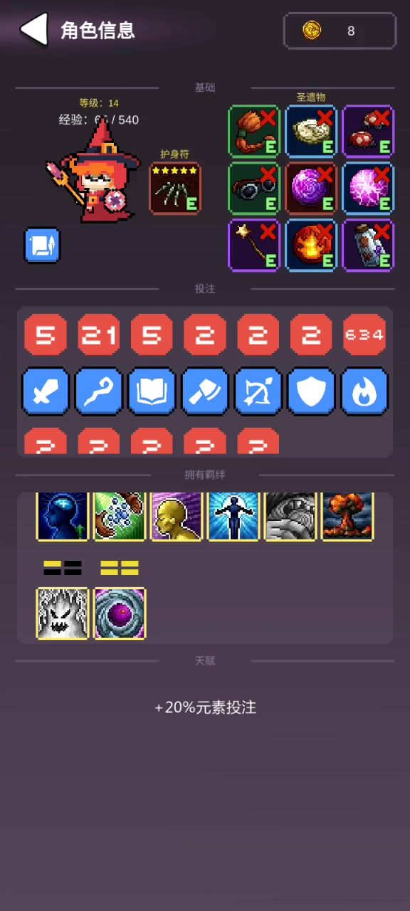 攻略: 1、种子104。 2、打完第一个怪选择顺序:①装备拿风刃②圣遗物拿星星法杖③升级刷新一次然后随意选。 3、第二个怪选择上边的圣遗物怪,打完刷新一下圣遗物拿七星瓢虫,拿到七星瓢虫这一刻开始,没有任何怪能挡住一个风刃(打第一个boss脸黑时除外)。 4、选择怪最多的路线优先boss。 护符:开局求稳可以用选择护符过渡,然后尽快转火车护符,越早叠被动越快。 武器:只拿风刃,因为高阶魔法书蓝耗太高