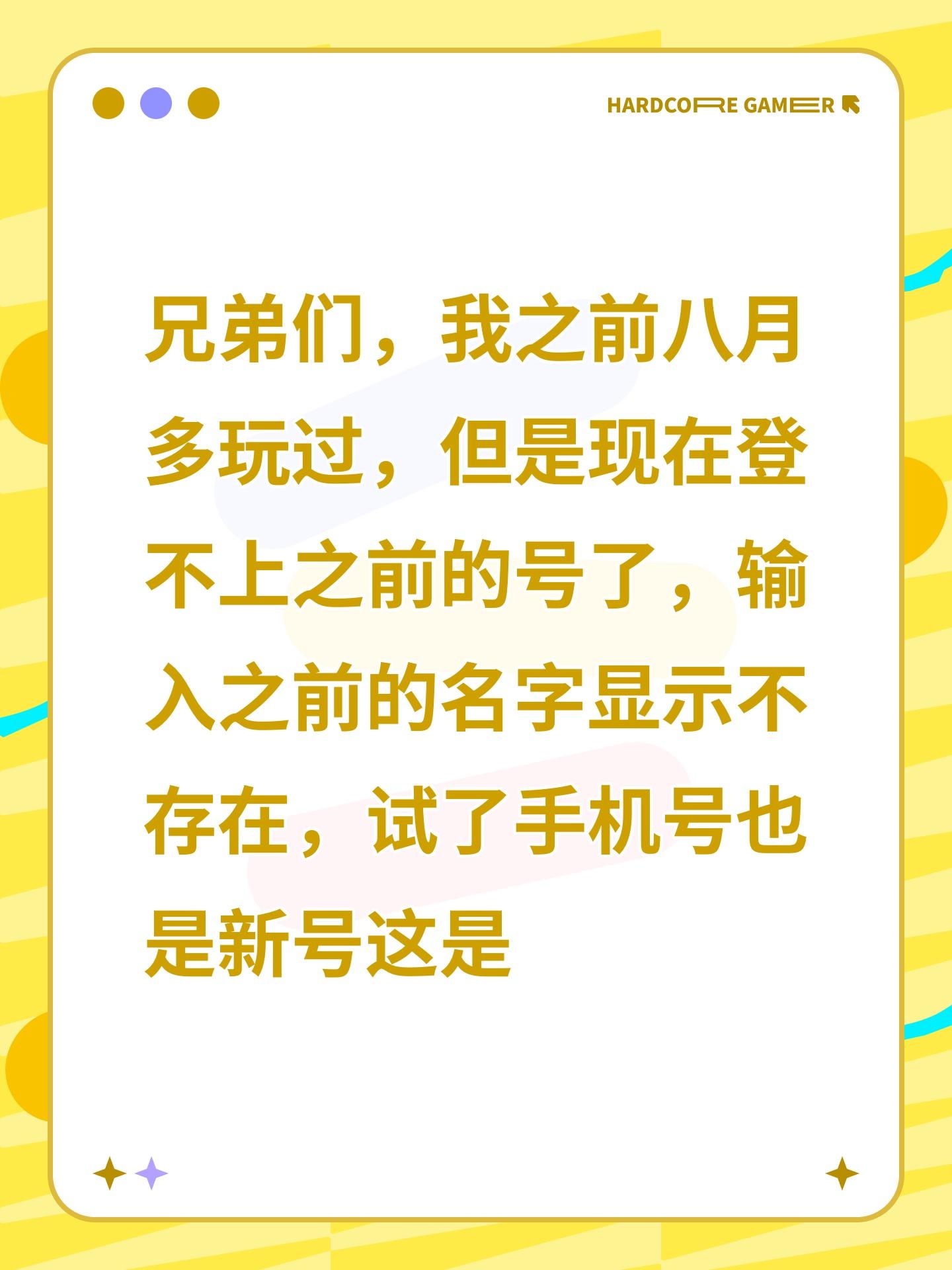兄弟们,我之前八月多玩过,但是现在登不上之前的号了,输入之前的名字显示不存在,试了手机号也是新号这是怎么回事