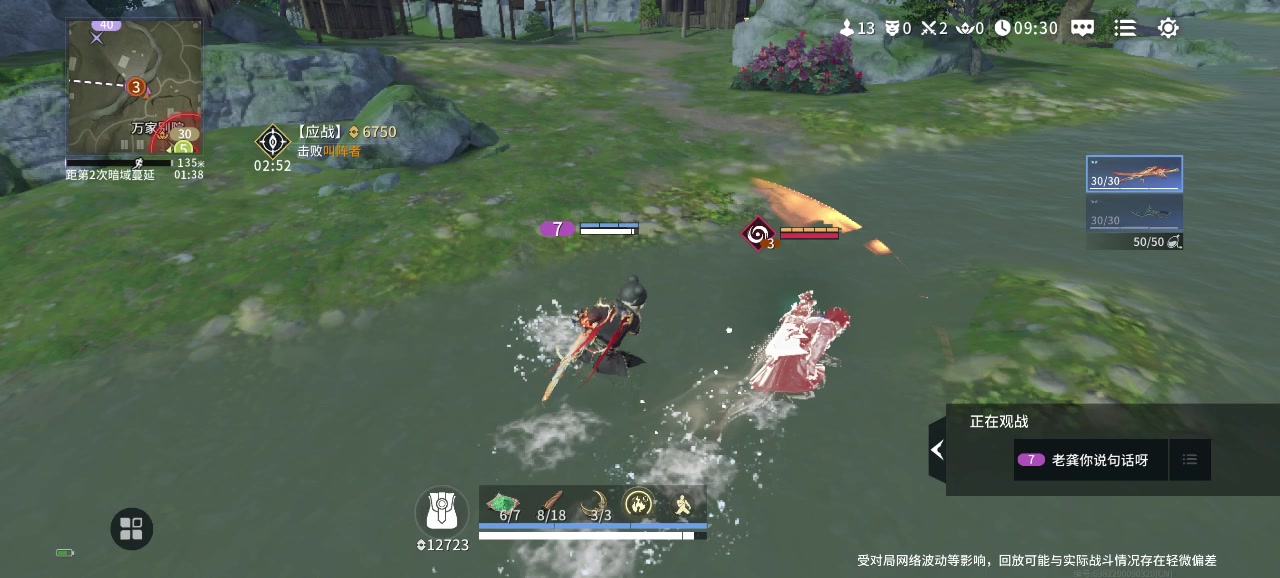 #永劫无间手游 上午打了一把单排,然后遇见一个胡桃给我让鸡了,于是加了好友。下午又开了一把单排又遇到啦!!因为有村标所以她一眼就看见我进游戏了!