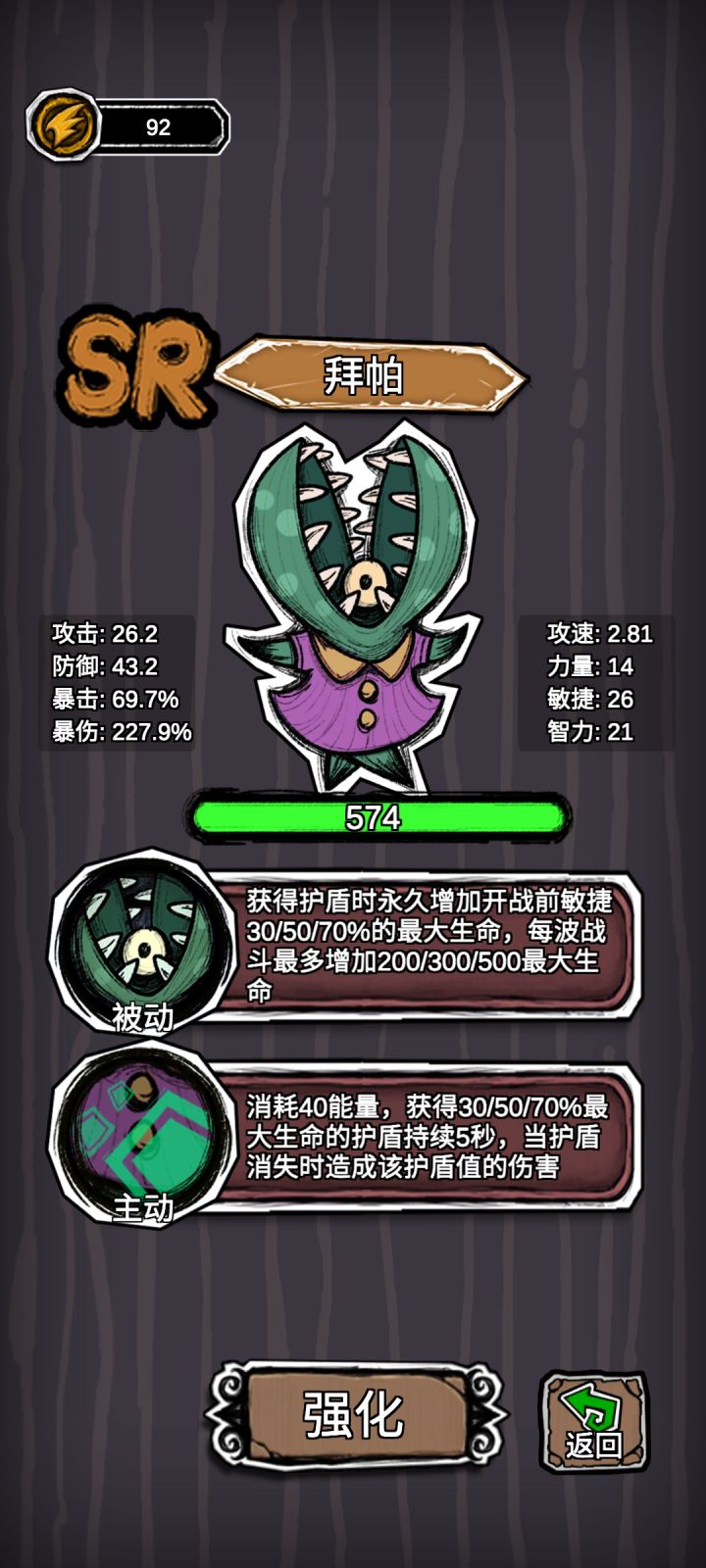 14过了。暴击-2攻,每秒加敏捷,躲闪-2,5秒躲闪过去了
